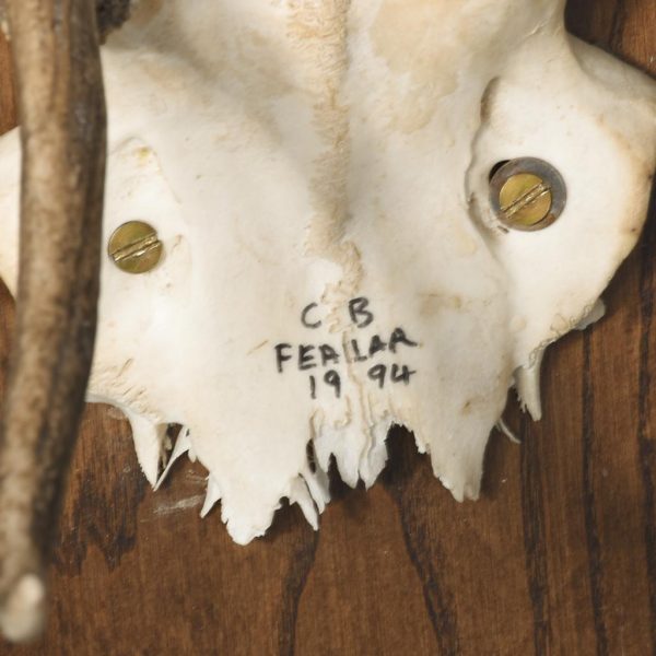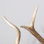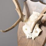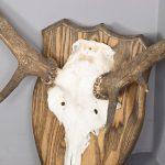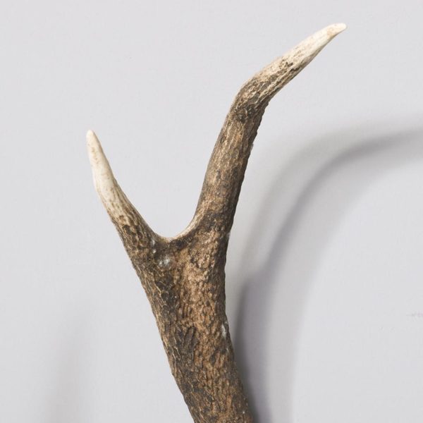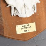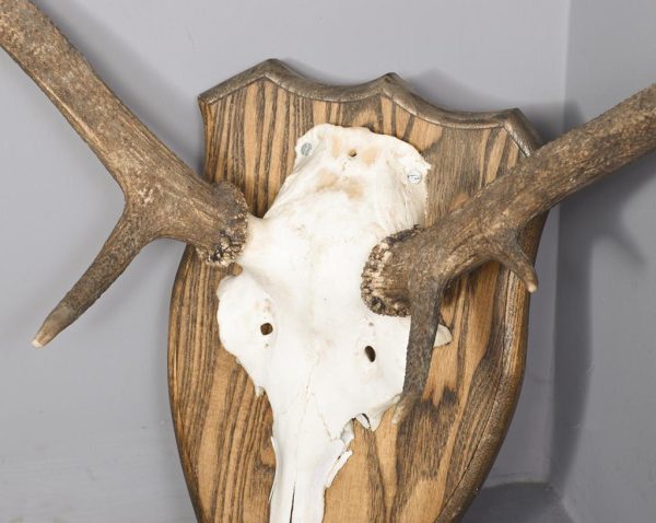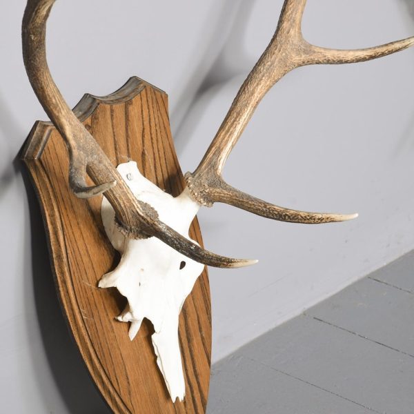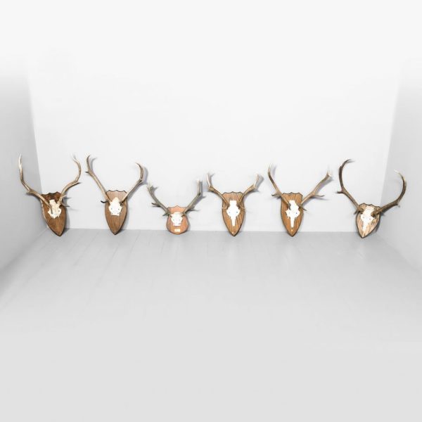 1980’s – 2000. Six mounted sets of antlers all on stylish oak heraldic shaped shields, with polished surface and moulded edges, some are 10 pointers, average height of 90cm H x 65cm W. Providence ex. Rossi Priory, Perthshire.
