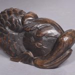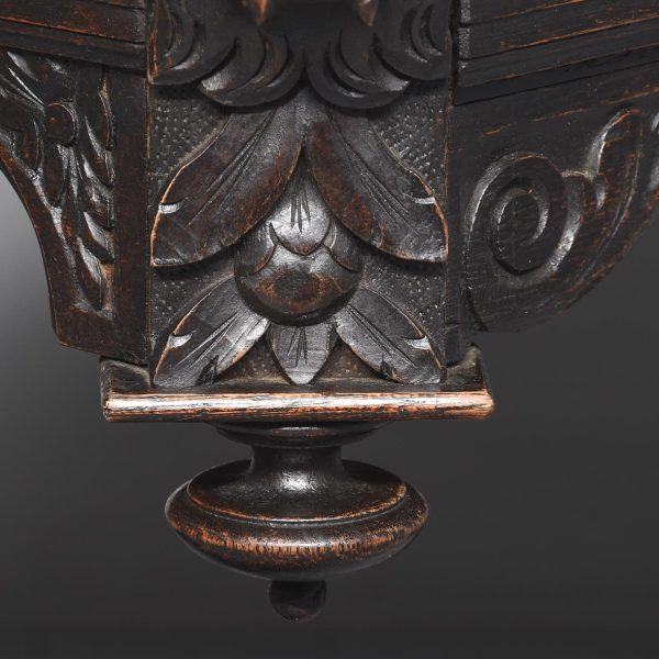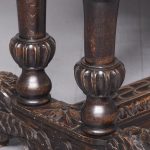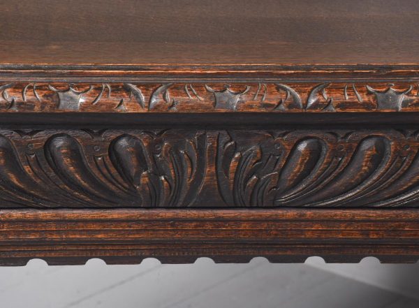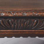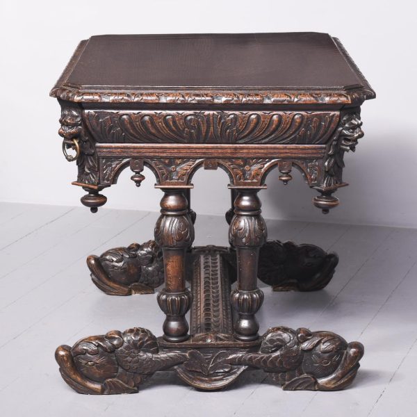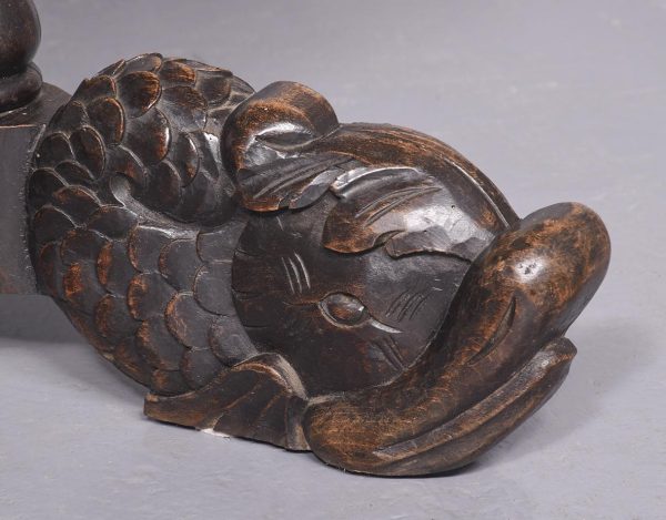 Circa 1880, a Dutch carved oak Dolphin table. Carved bulbous uprights with mythical dolphin feet. Excellent condition.