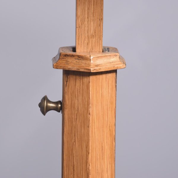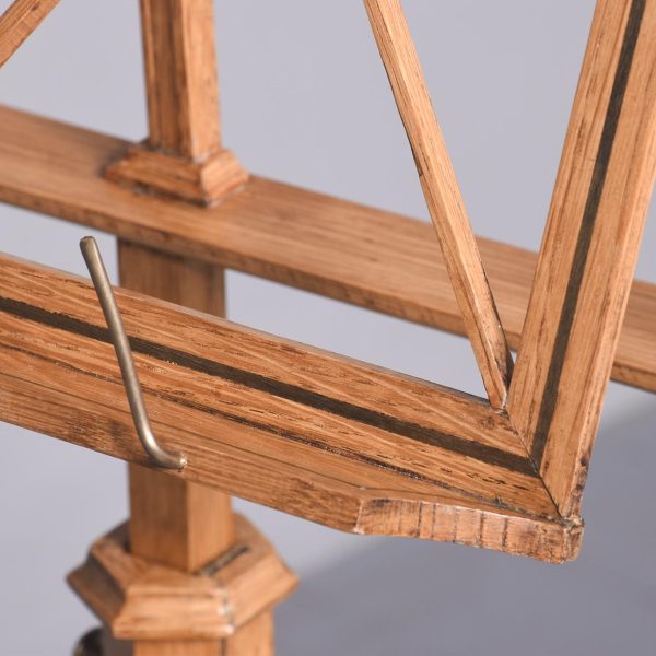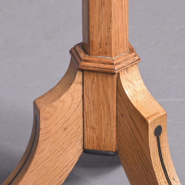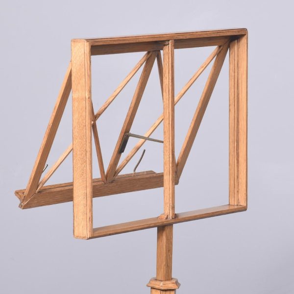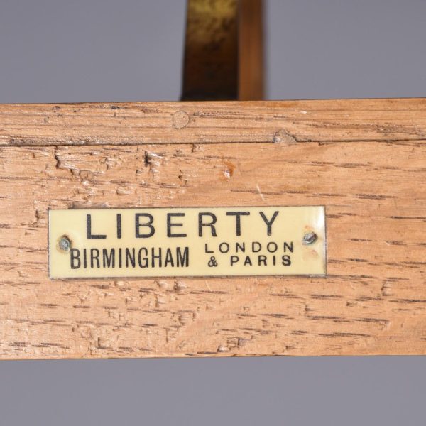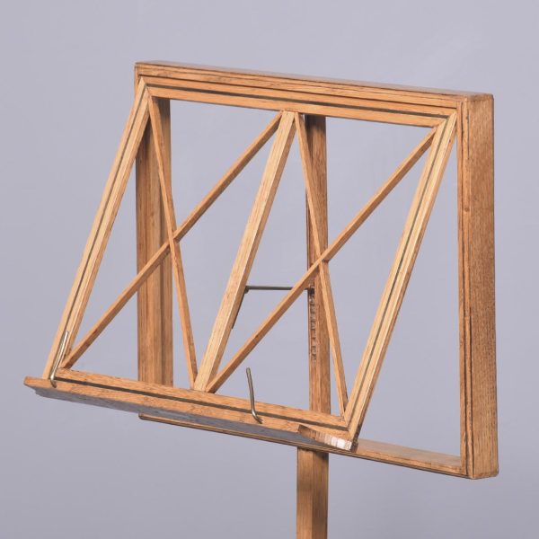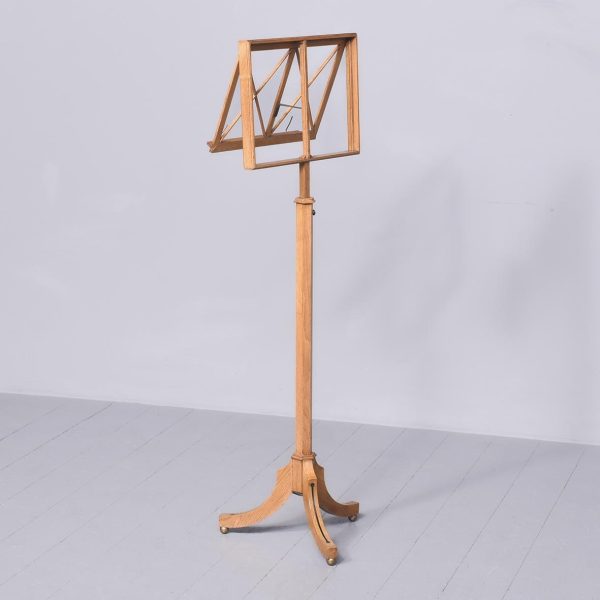 Circa 1900. A rare fine ash and ebony inlaid music stand by Liberty & Co. The adjustable stand with a rachet support on a tapered hexagonal stem over outswept legs with ebony inlay raised on brass ball feet bearing an ivorine trade label ‘Liberty Birmingham, London & Paris.’ Superb quality and functional