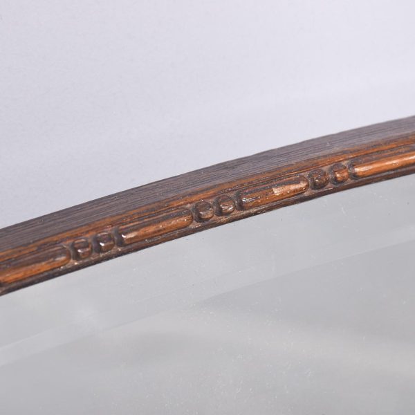 Circa 1930s. A neat size stylish oak framed bevel edged mirror, the rectangular shaped mirror with oval top and bottom with fine egg and dart beaded frame, the original mirror with no foxing.