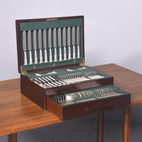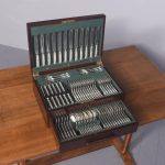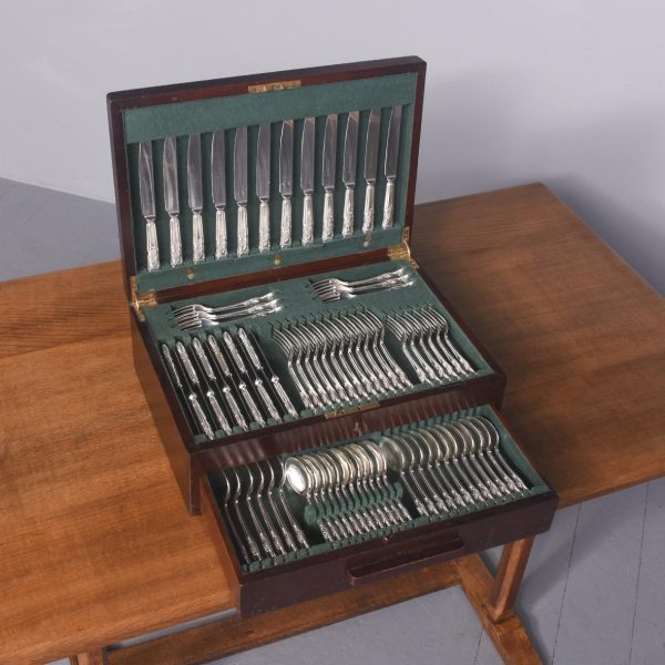 Circa 1920’s A double tiered canteen of cutlery stamped ’Walker and Hall of Sheffield’, thew 84-piece set (complete) includes various size knives, forks and spoons the EPNS in excellent condition, with no pitting or bent items.