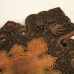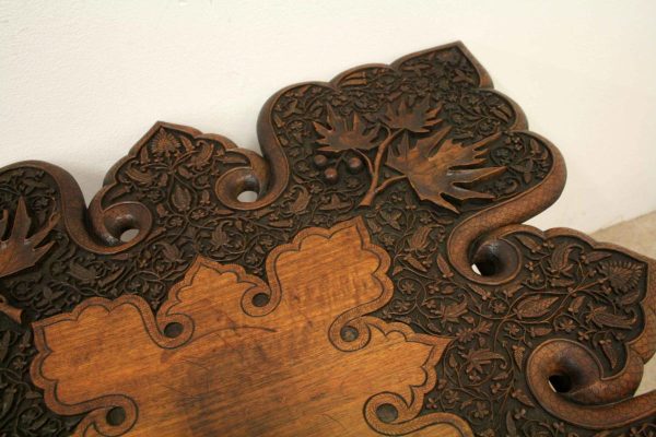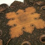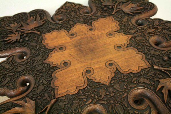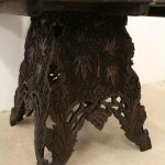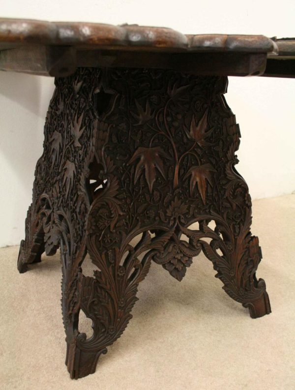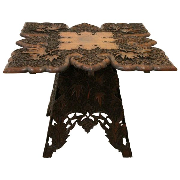 Circa 1900, oriental finely carved hardwood occasional table, with finest quality foliate carved top on a folding base.
