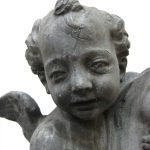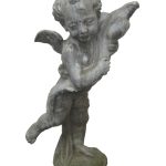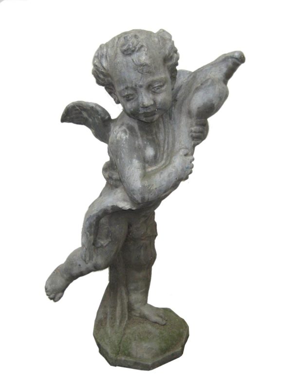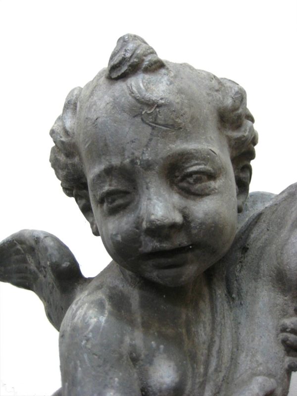 Circa 1800, cast lead figure of a cherub embracing a dolphin.