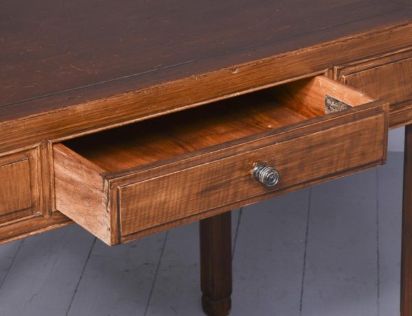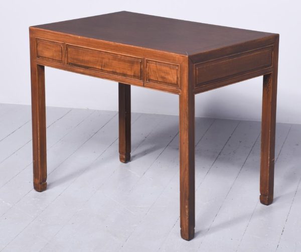 Circa 1920s. An unusual Chinese side table. The rectangular shaped table, with broad ebony inlay and banding. Drawer in the frieze has a turned knob handle, with a presentation plaque on the inside. The table rests on four square legs with beading on the fore edge and finishing on a classic Chinese foot.
