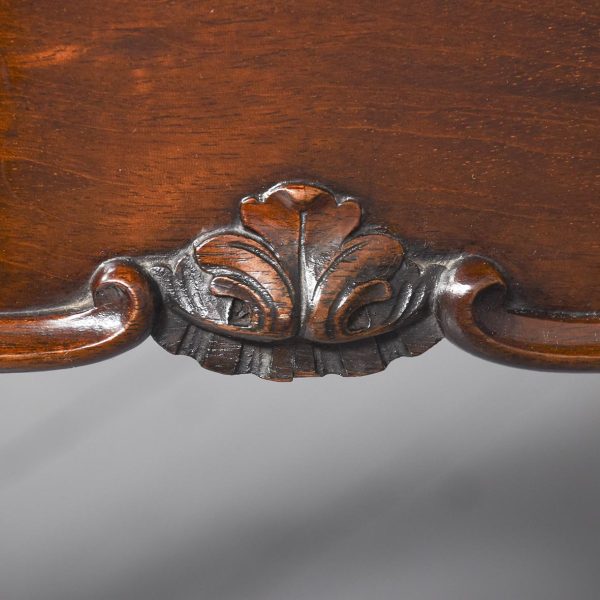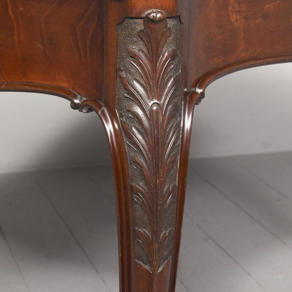 Circa 1900. An interesting stylish shape mahogany table in the Chippendale style probably by ‘Morison & Co of Edinburgh’ The stylish shaped top with an elegant serpentine and moulded fore-edge, the deep shaped frieze with a beading on the bottom of extended C-scrolls with foliate carving in the center, resting on four elegant cabriole legs with foliate carving on the facing, extended scrolling on the inside finishing on a stylish curled foot.