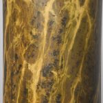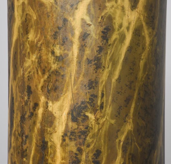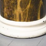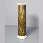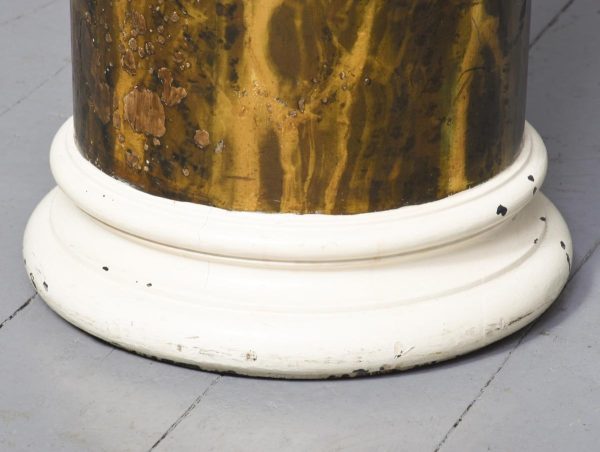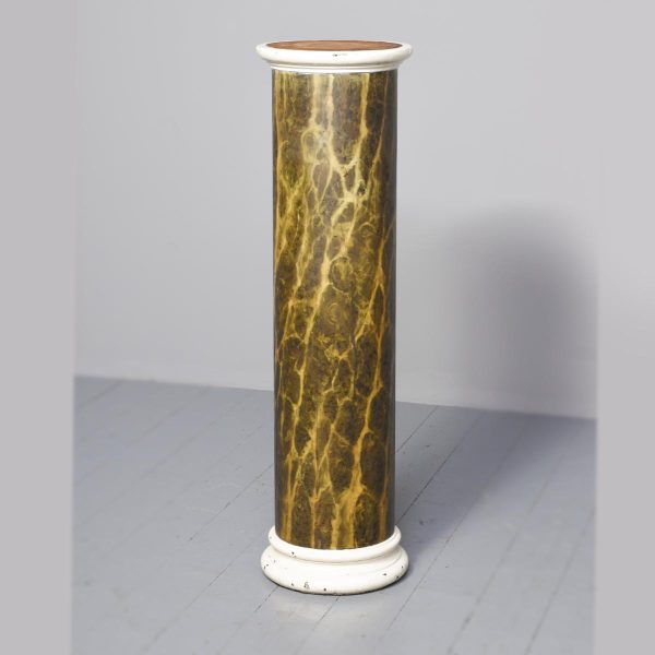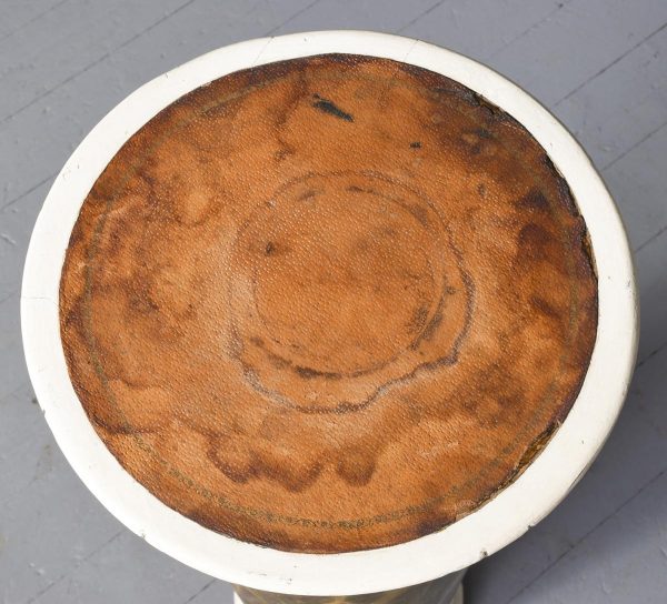 Circa 1890. An interesting circular shaped pedestal. The top with leather insert and moulded edge painted white, the faux marble column in green variegated marble. The stepped moulded base also painted white.