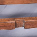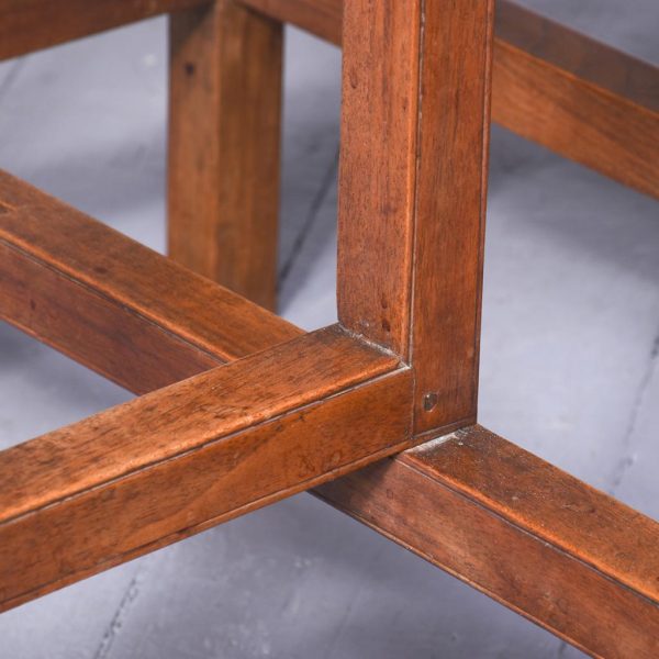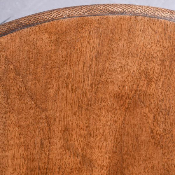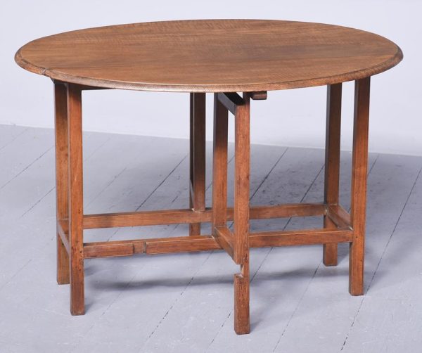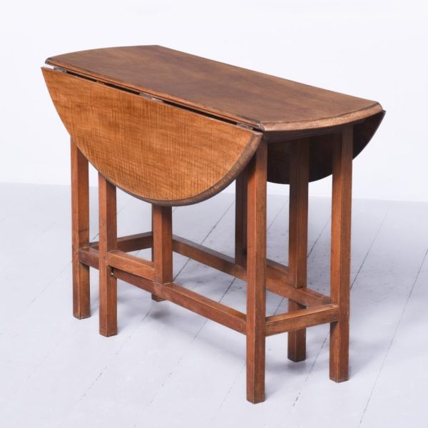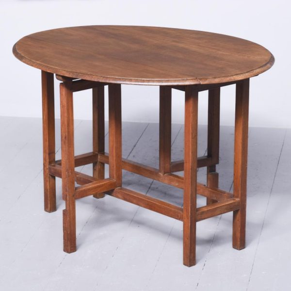 Circa 1930s. A red walnut Cotswold school (coffee sized) gateleg table. The solid walnut top with two oval flaps with a fish scale carving on the foredge. The table stands on six simple square legs with beaded fore edges, two of the legs are hinged and open to support for the drop flaps, united by conforming stretchers, the table has recently been re polished (traditionally).