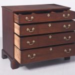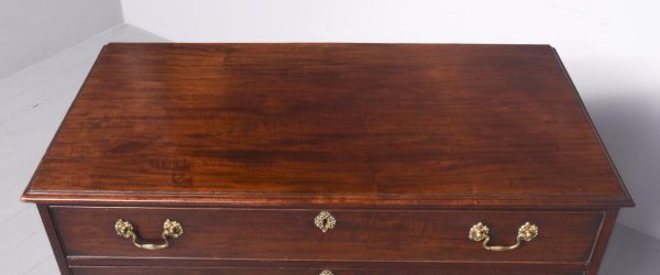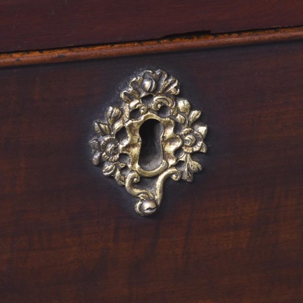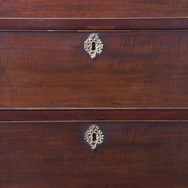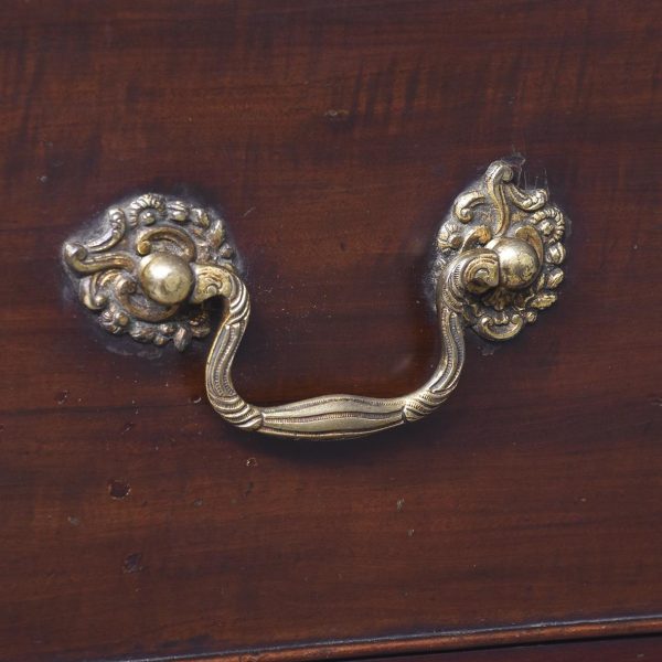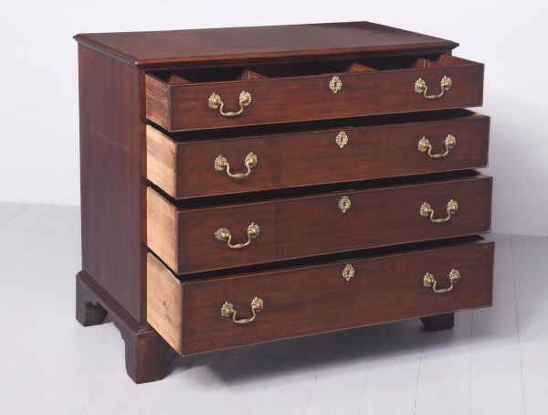 Circa 1770. A good quality mid George III mahogany chest of drawers. The ‘Dumfries House’stylechest with well figured mahogany top and moulded fore-edge, the front with a configuration of four full length graduating drawers, each with pierced and gilded escutcheons and gilded and cast swanneck handles with elegant rococo back-plates, beneath the bottom drawer there is further mouldings and the chest rests on four chunky bracket feet.