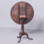 Circa 1760. An early George III snap top table. The circular top in solid mahogany, with original blacksmith made spring loaded clasp, resting on an elegant bulbous stem, with three hipped cabriole legs finishing on an extended pad foot.