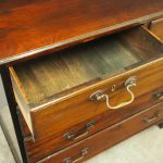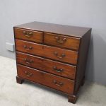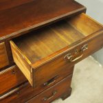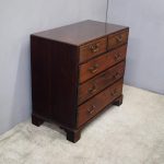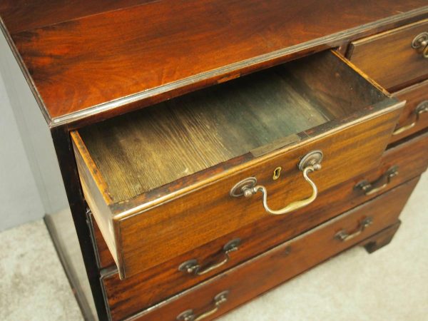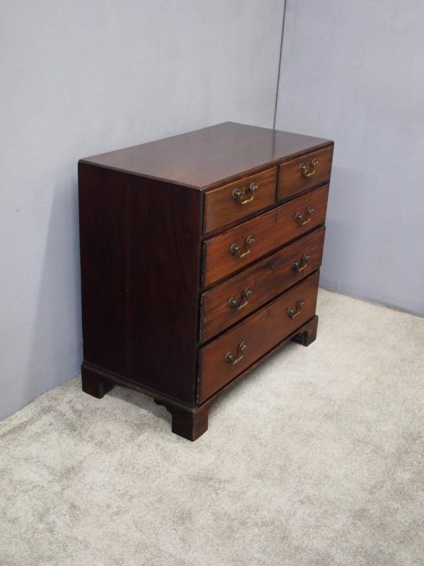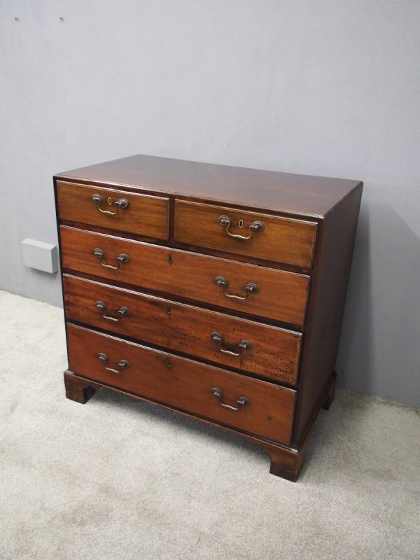 Circa 1760, early George III neat-sized, caddy-top chest of drawers in a heavy, fine-quality figured Cuban mahogany. The rectangular top with caddy moulding above two short and three long, oak-lined drawers with brass swan neck handles and escutcheons all standing on original bracket feet.