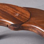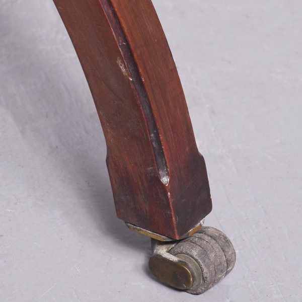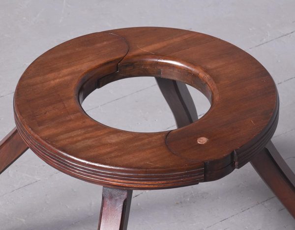Circa 1880. A late Victorian mahogany circular child walker. The circular hinged top with circular aperture and rounded edges on the inside and reeded on the outside, the top is hinged and opens for putting the child into the walker. The walker rests on four splayed shaped legs with reeded fore-edges and finishing with four squat brass castors, three of them have the original leather wheels and one has a brass wheel.