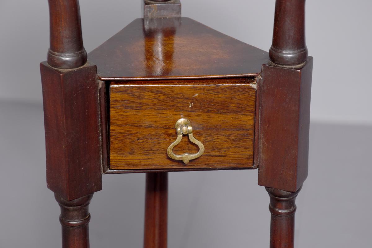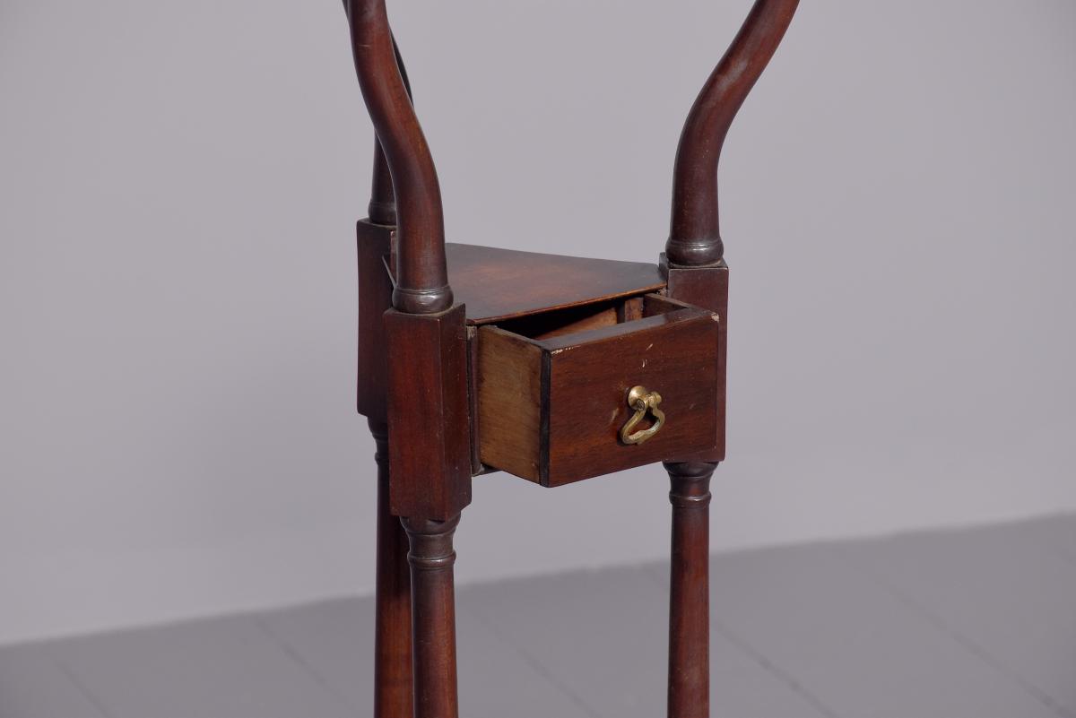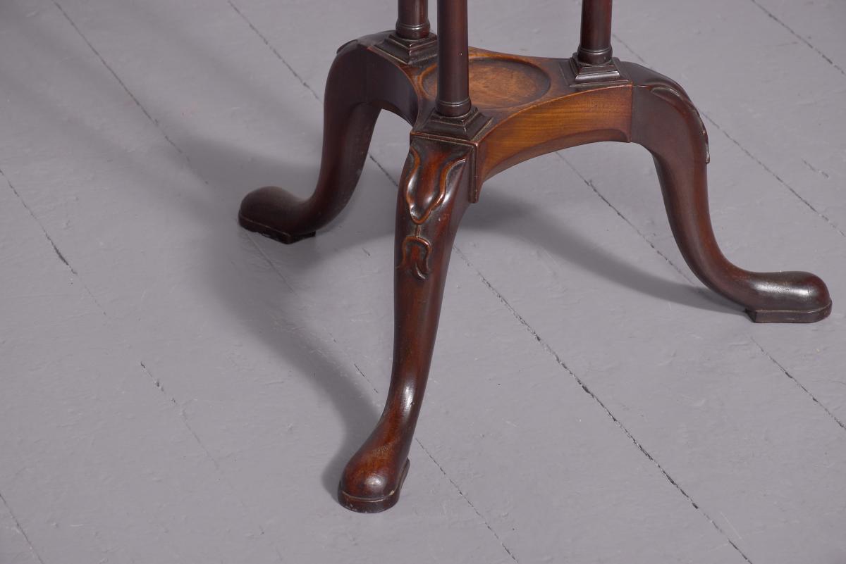 Circa 1760. Elegant George 2nd mahogany circular lamp stand. The circular reeded top on three cabriole supports above a small ledge and a drawer with a brass axe head handle, on three columns over a tripod base with beautiful cabriole legs with foliate carved knees and flat pad feet. Lovely colour and patina.