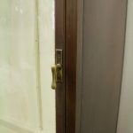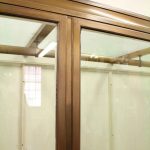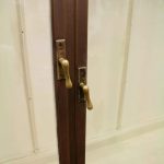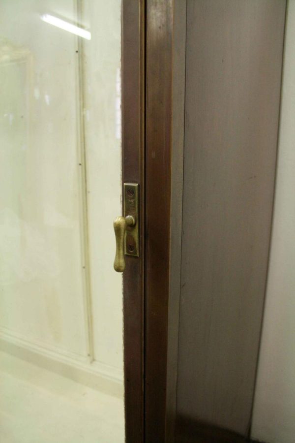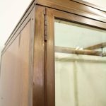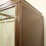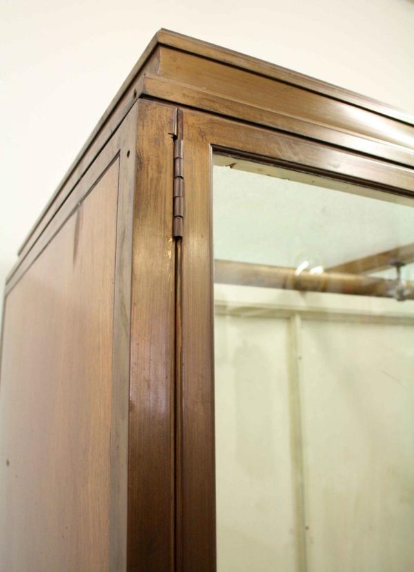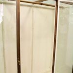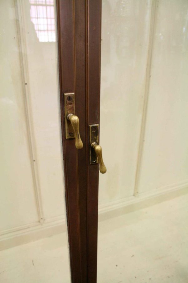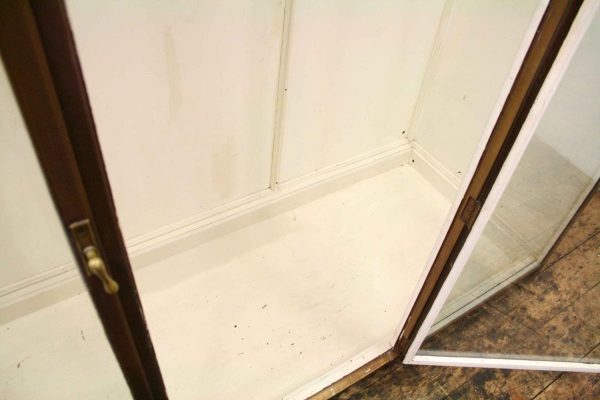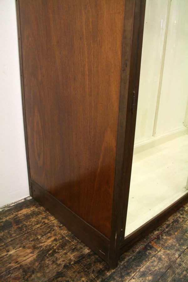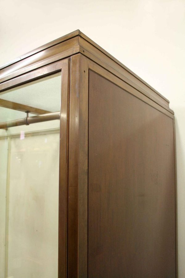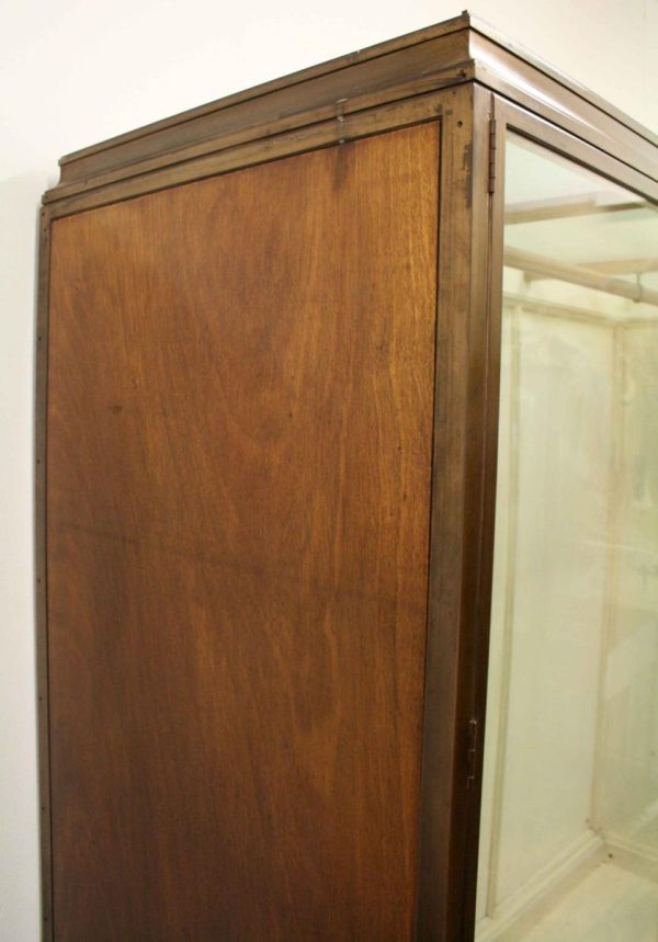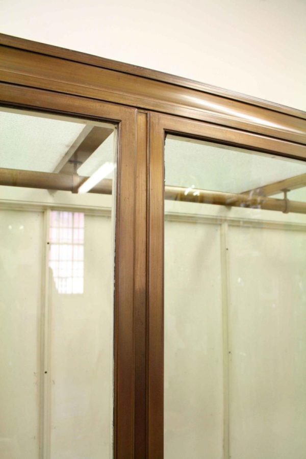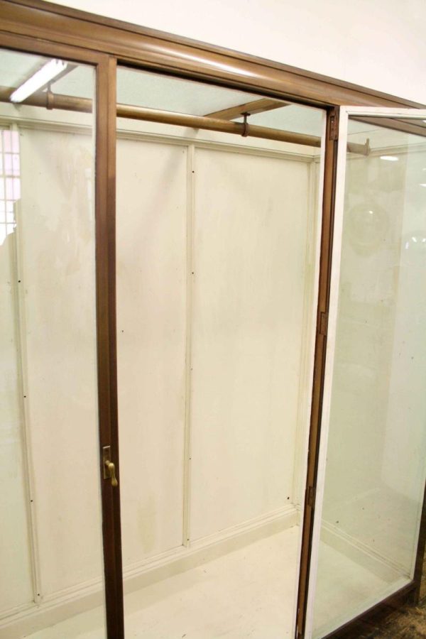 Circa 1920, very unusual bronze 3 door cabinet from the fur department of Jenners Department Store in Princes Street. Jenners in Edinburgh are a Scottish institution. The cabinet with its 3 panelled frosted lid and a bronze rail running the length of the cabinet. There are 3 bronze framed doors, each with a locking clasp. The external frame is also bronze with its slight pagoda top, polished panelled ends and back making the cabinet free standing. This stylish piece of furniture could be used in a walk in wardrobe or used for display in many environments. A rare piece of Scottish history from a great department store.