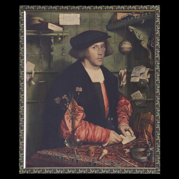 Circa 1970’s. A quality framed coloured print after’ Hans Holbein the younger,’ of a portrait of the merchant ‘George Gisze’ dated 1532. The high-quality print in a stylish glazed frame (see back of picture for further information).