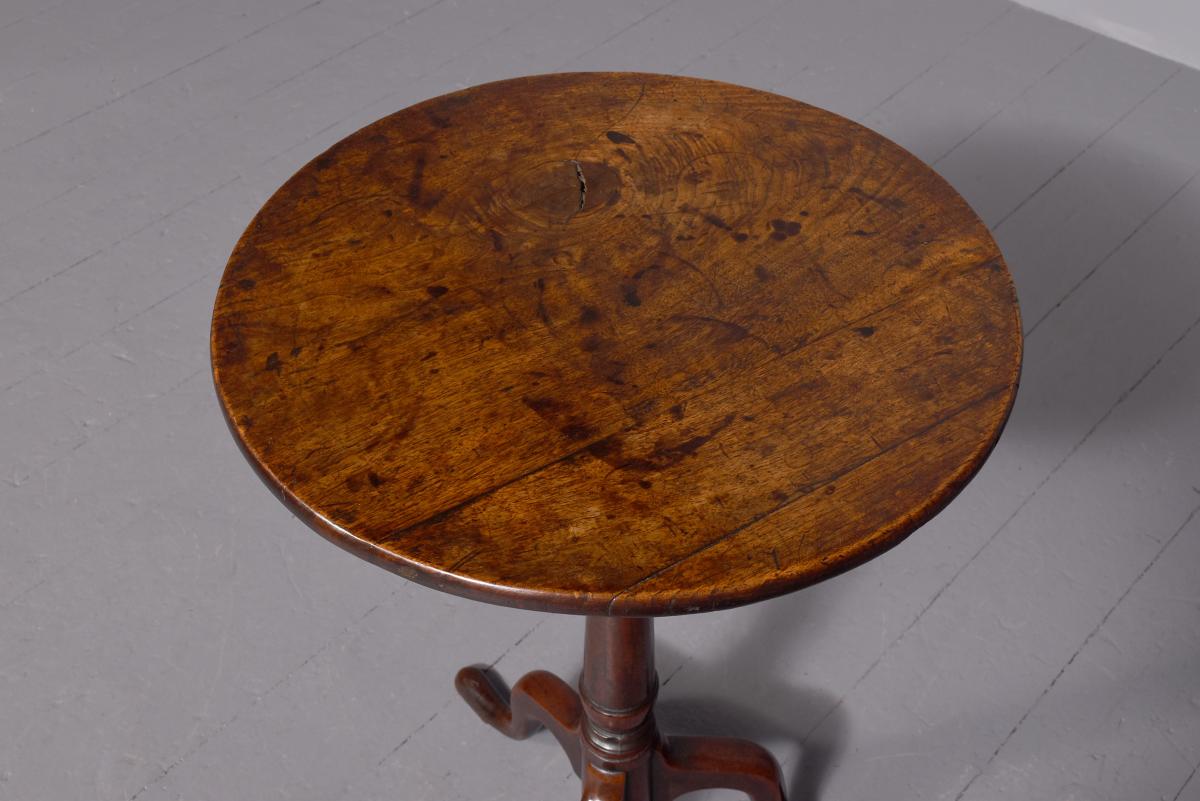 Circa 1760. George 2nd mahogany tripod occasional table with a wonderful colour and original patina. The circular top with unusual figuring above a tapering turned stem over cabriole legs with flat pad feet.