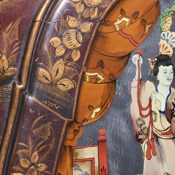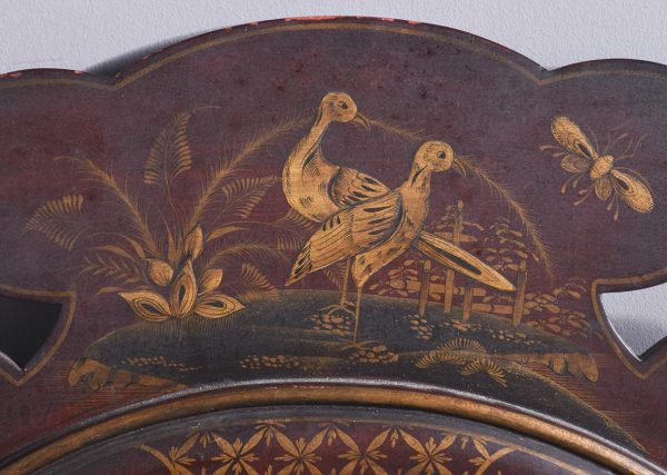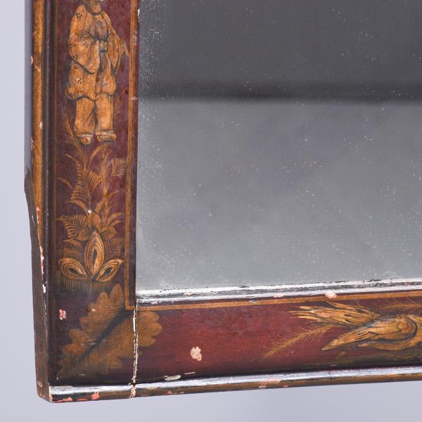 Circa 1870. A good George I style mirror. The arch depicting chinoiserie figures in a landscape above a rectangular plate mirror, with a shaped crest decorated with birds and insects in a landscape, enclosed in a reversed plated panel. The mirror and frame have great wear, good colour and patination.