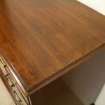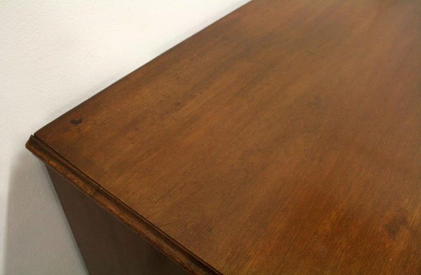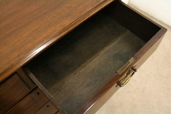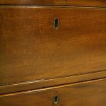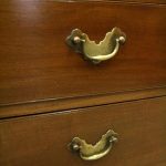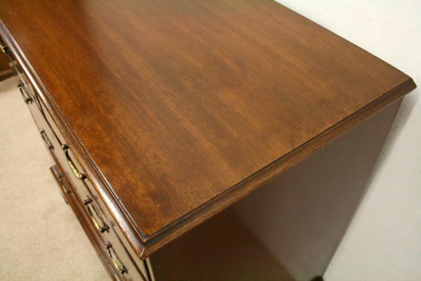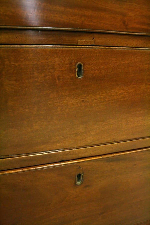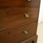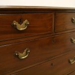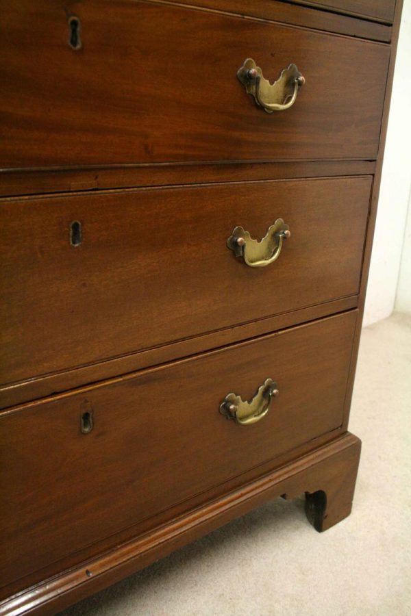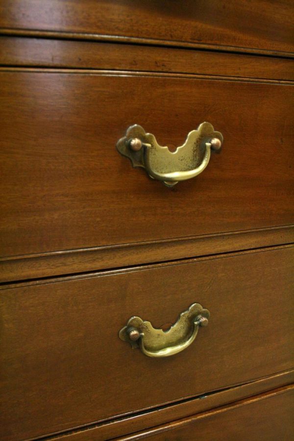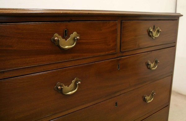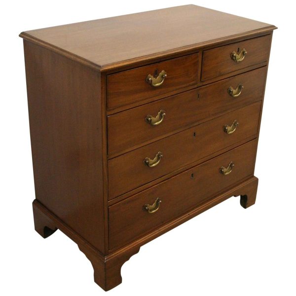 Circa 1770, neat sized George III mahogany chest of drawers, the top with a moulded edge over 2 short and 3 long graduating drawers with brass handles, all standing on original bracket feet.