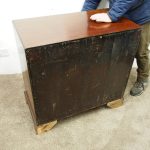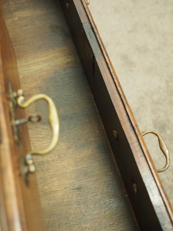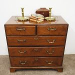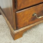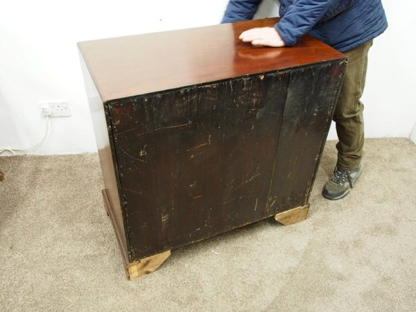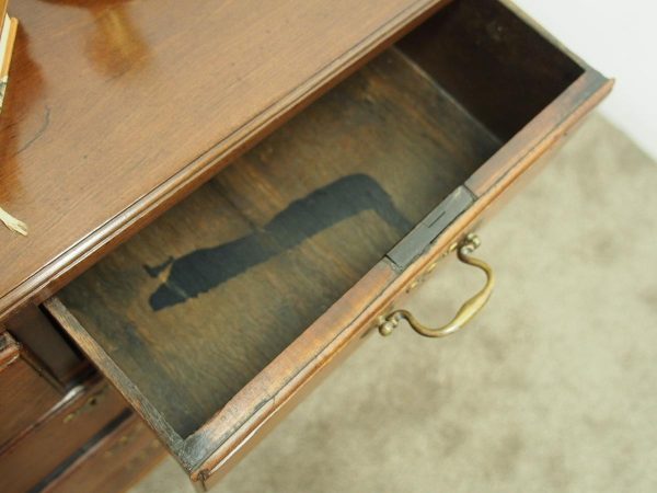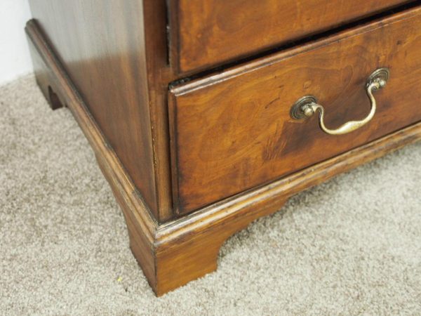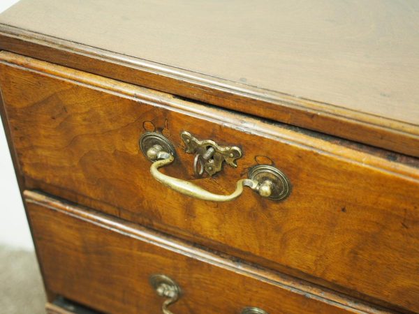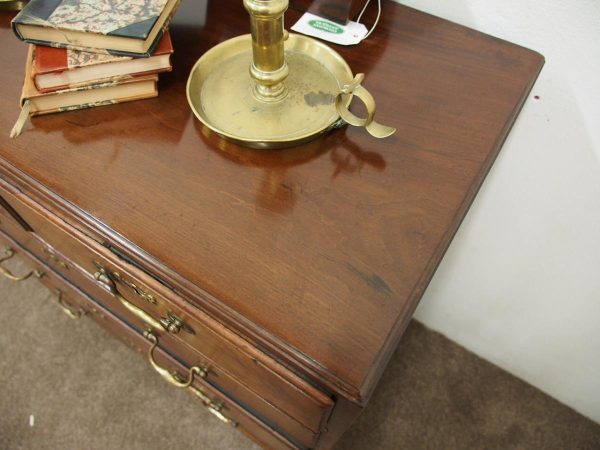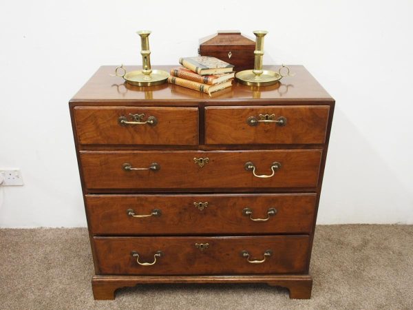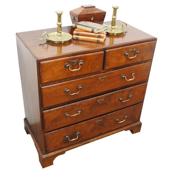 Circa 1760, neat sized George III caddy top chest of drawers in figured Cuban mahogany. The rectangular caddy top sits over two short and three long oak lined drawers, and it is all on shaped bracket feet.