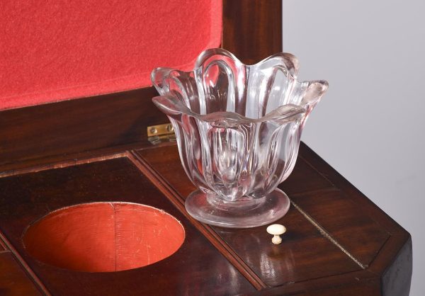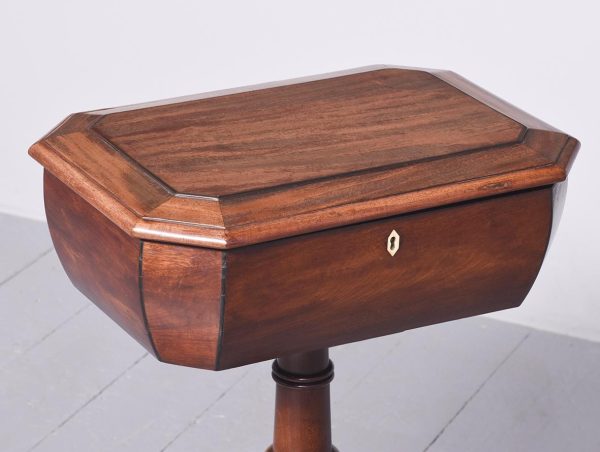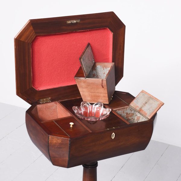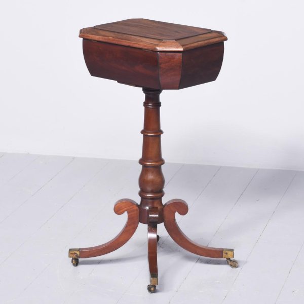Circa 1790. George III mahogany teapoy in perfect condition, with brass handles and supported on a ring turned tapering column over four hipped cabriole legs with original brass caps and castors. Would make a lovely lamp stand.