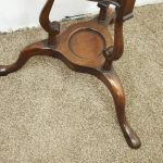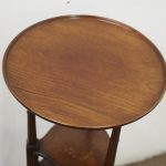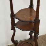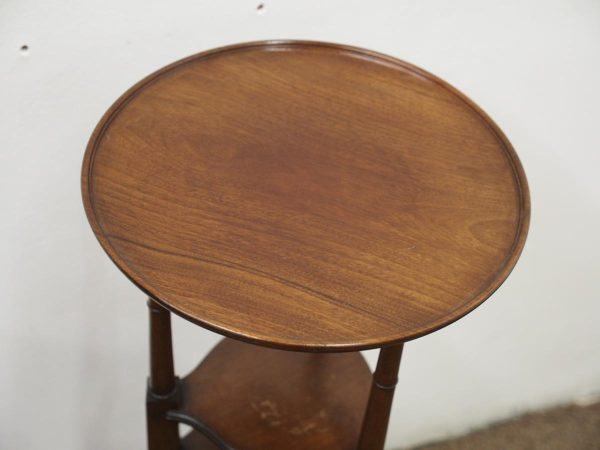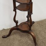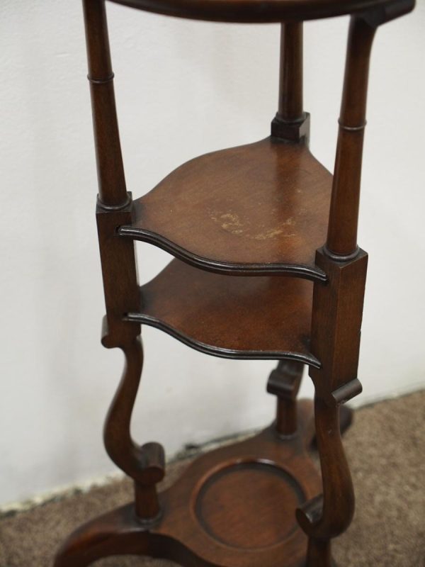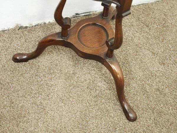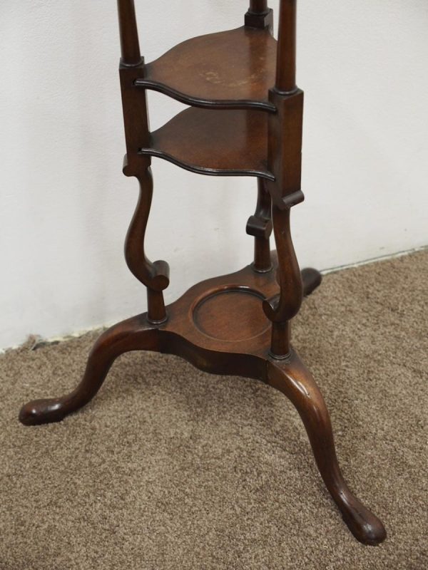 Circa 1880, George III style basin stand. The solid circular top with its moulded edge is supported on three turned and tapering columns with ring turns in the centre. Further down there are two shaped shelves leading on to cabriole legs and finish on 3 elegant pad feet.