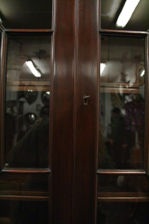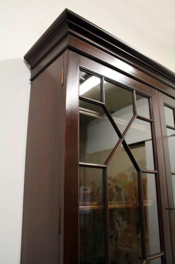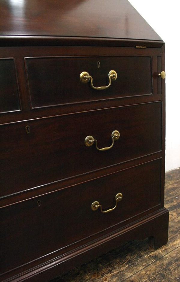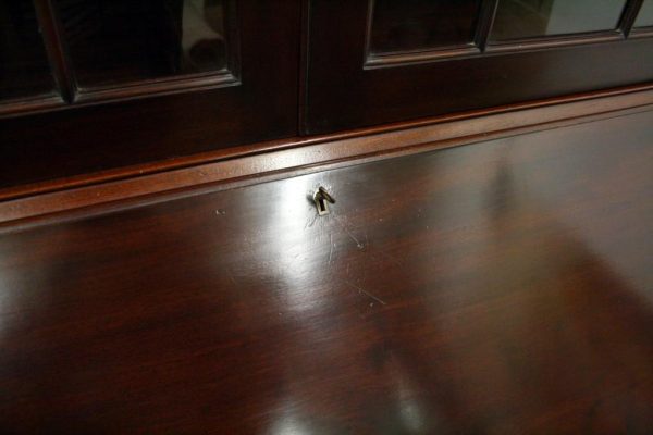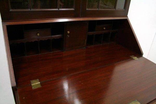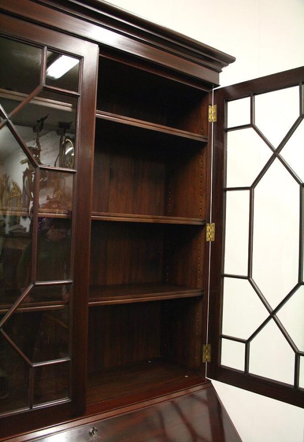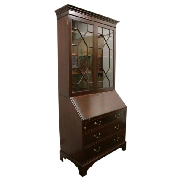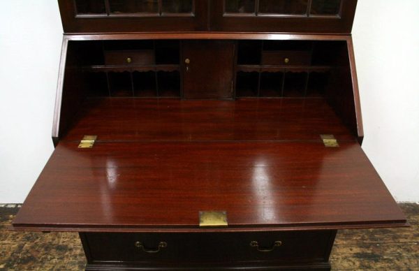 Circa 1900, George III style mahogany bureau bookcase, handmade in solid mahogany with astragal glazed doors above the bureau with graduated drawers, all standing on bracket feet.