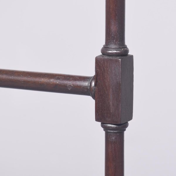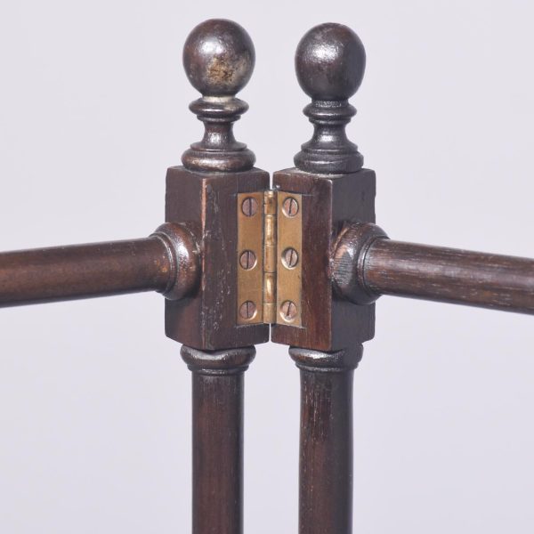 Circa 1900. A George III style mahogany spider leg folding towel rail. The top surmounted by elegant finials, each section of three finely turned rails supported on turned uprights finishing on a slender toe.