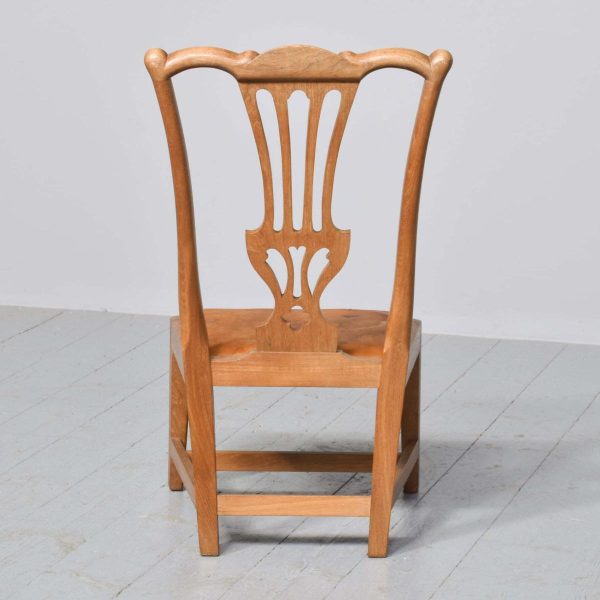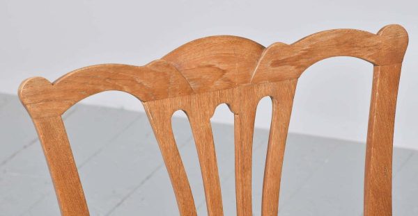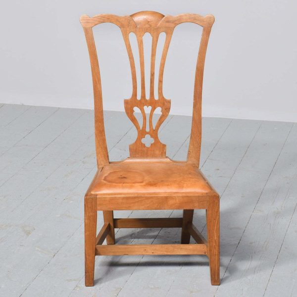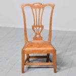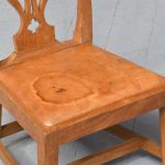 Circa 1920s a neat size mahogany gossip chair by ‘Wheelers of Arncroach Fife’. The Chippendale style chair with shaped cresting rail, pierced splat, original leather drop in seat pad, back legs square and slightly outswept, with simple square tapering legs at the front, all united by conforming stretchers. Wheelers had a lot of collaborations with ‘Sir Robert Lorimer’, who lived in Kellie castle, close by.