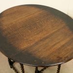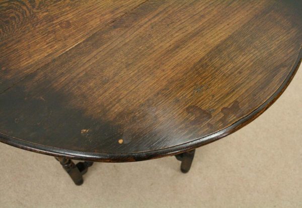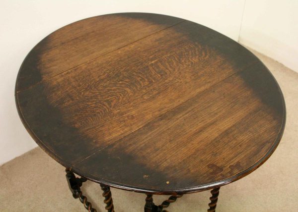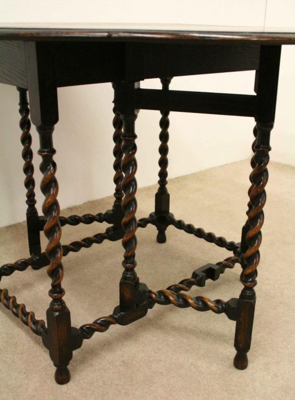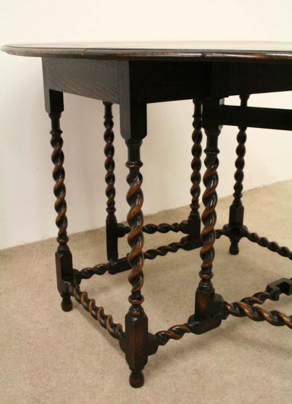 Circa 1920, Jacobean style oak drop leaf table, the top with a moulded edge and lovely two tone colour, standing on unusually fine barley twist supports united by stretchers.
