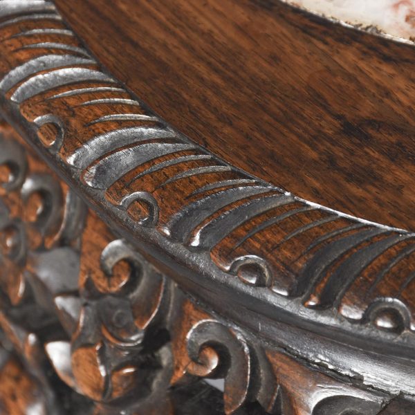 Large Carved Hardwood Qing Dynasty Marble Inset Plant Stand