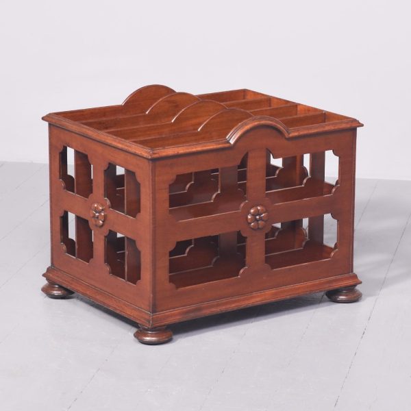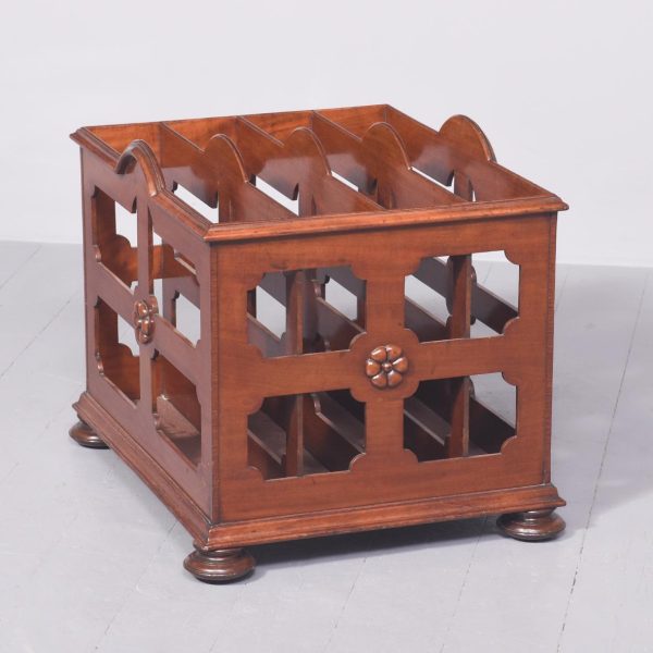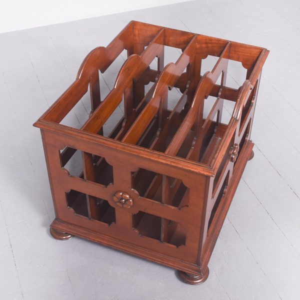 Circa 1826. A large George IV mahogany folio cabinet, with four pierced divisions, with a stylish arch, the sides and front with flower head motifs and elegant moulding beneath. All resting on four flattened bun feet concealing the original brass and brown porcelain castors beneath.