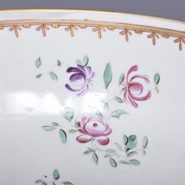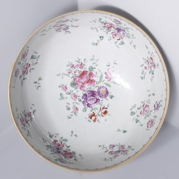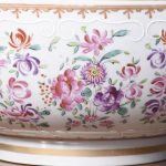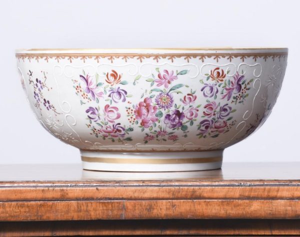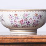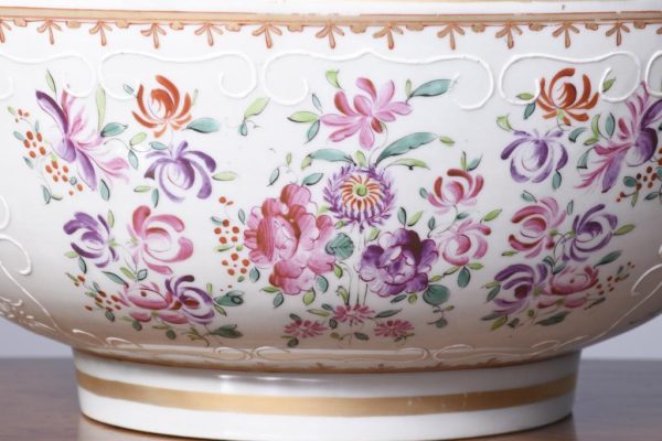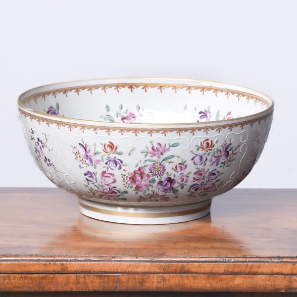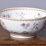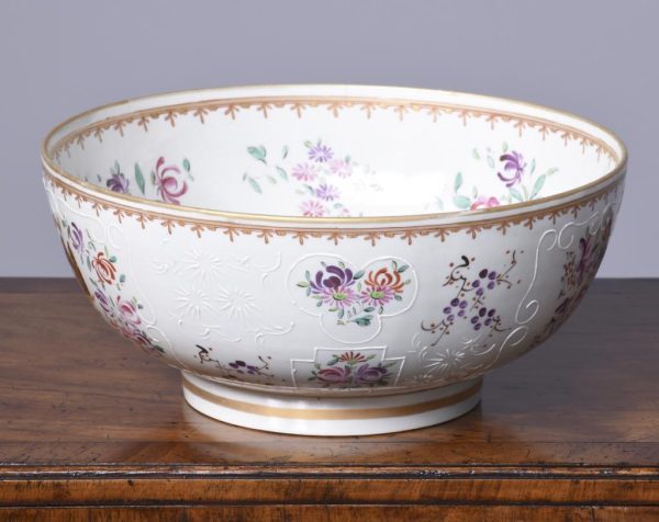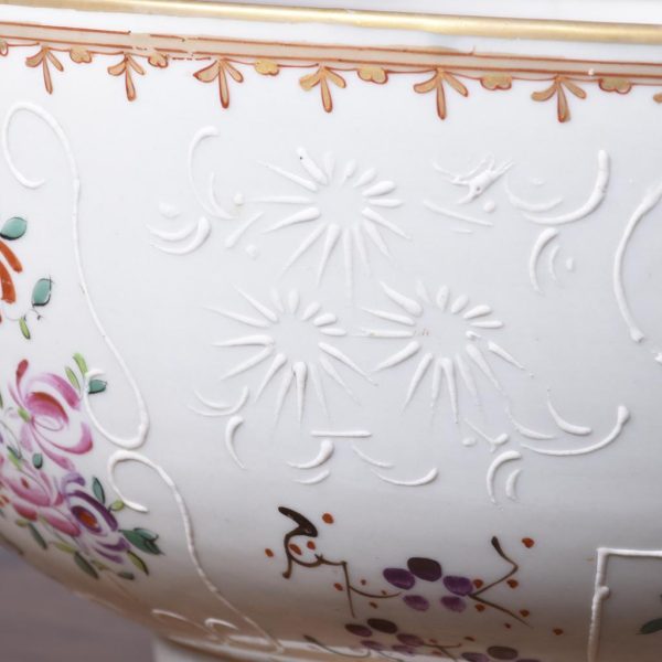 Circa 1860. A large mid-19th century porcelain punch bowl skillfully hand-decorated with an armorial crest. This artistic antique bowl was designed to serve punch but stands alone as a strong and sculptural objet d’art, makers mark to the base.