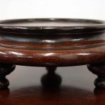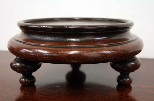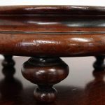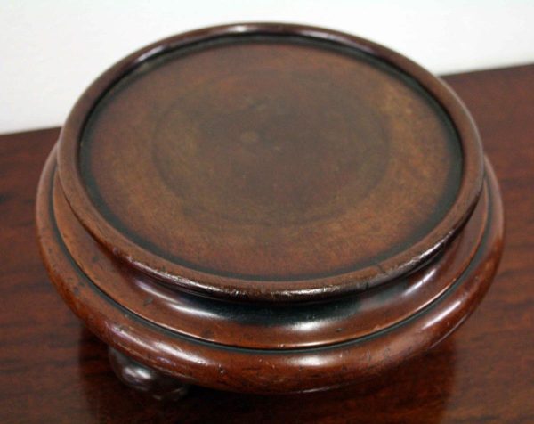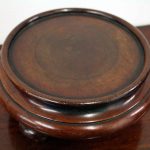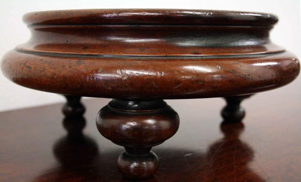 Circa 1860, unusual large Scottish Victorian wine coaster. The large, circular coaster has a raised edge and flat centre. On the outside of this is an ogee moulding and a further, large mahogany bezel. The underside can be seen retaining marks where it was held in the lathe. It stands on three large, but squat turned feet, which gives it a certain elegance. This is a nice piece of country furniture.
