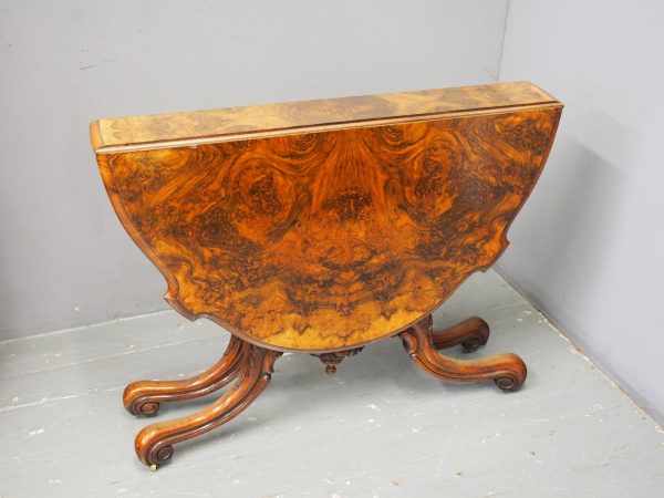 Large Victorian Burr Walnut Sutherland Tea Table
