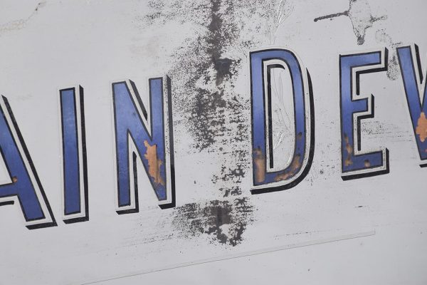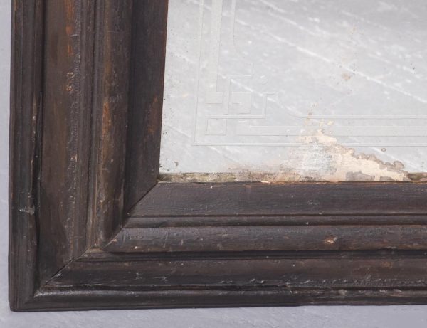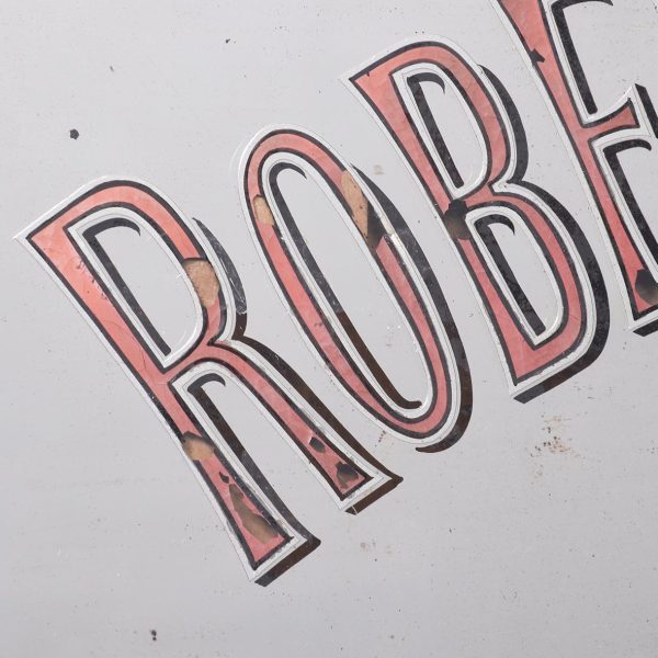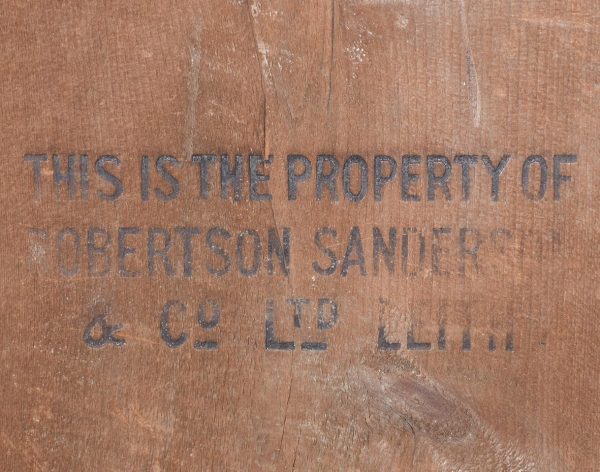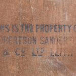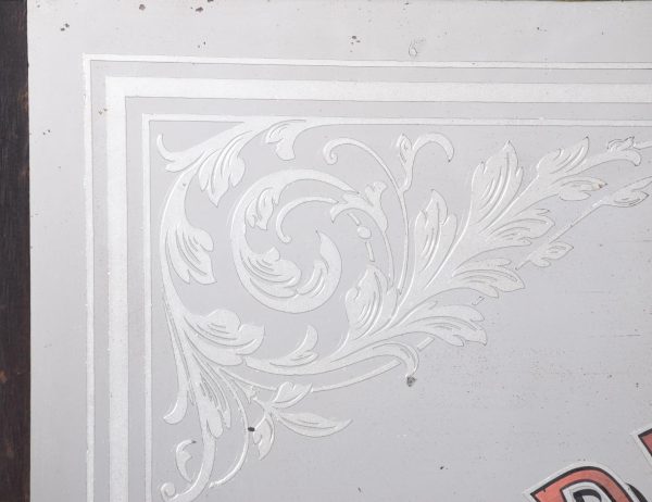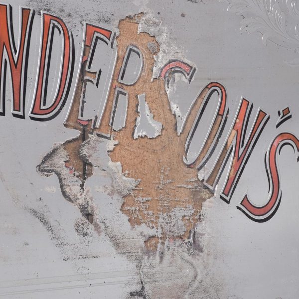 Circa 1890. A large painted etched and framed advertising pub mirror (with foxing) contained in a stained oak frame, the mirror is for ‘Robertson’s and Sanderson’s original mountain dew’, and in bold gold letters to the bottom ‘Leith’.