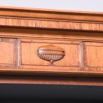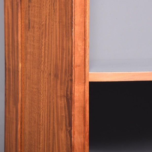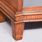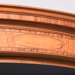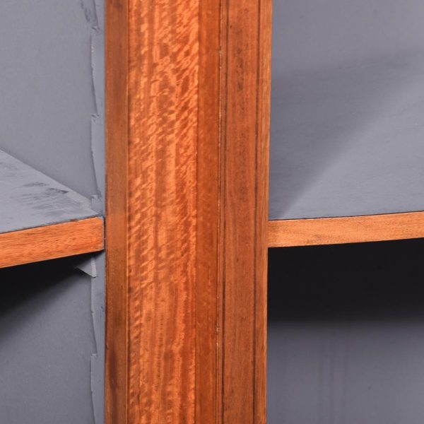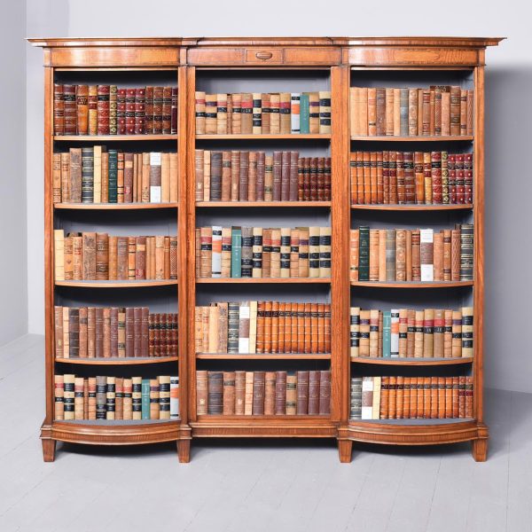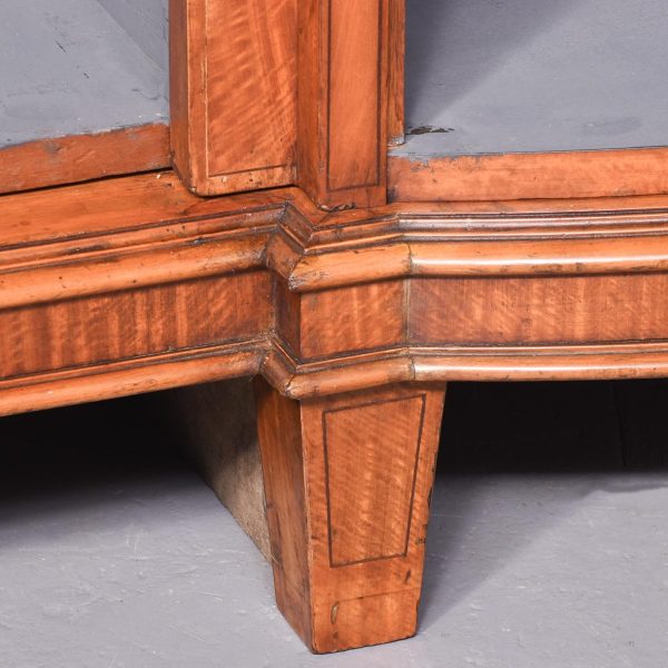 Circa 1880 with alterations. Late 19th Century Sheraton-style inlaid satinwood shaped-front open bookcase. The crossbanded cornice with bow sections on each end flanking a central panel with a finely carved urn above the three open bookcase sections each with 4 adjustable shelves over a moulded base. Supported on a base with crossbanded apron over short inlaid tapering legs.