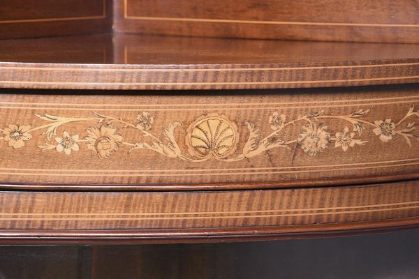 Late Victorian Sheraton Style Inlaid Bowfront Corner Cabinet In Fiddleback Mahogany