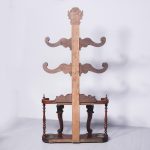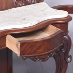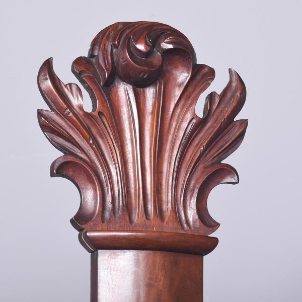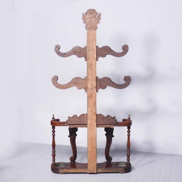 Circa 1830. Magnificent tall William IV carved mahogany hall stand. Surmounted by an exceptional acanthus carved pediment, the shaped acanthus carved arms with original large turned hat and coat hooks. The base with a shaped, white marble top above a frieze drawer over bold carved cabriole legs and with curved umbrella stands to the side with original zinc fittings. All supported on a shaped platform base over neat bun feet.
