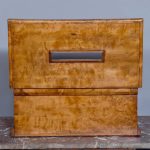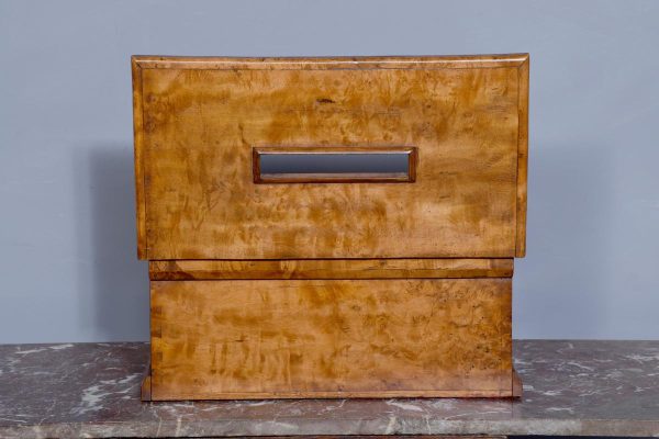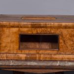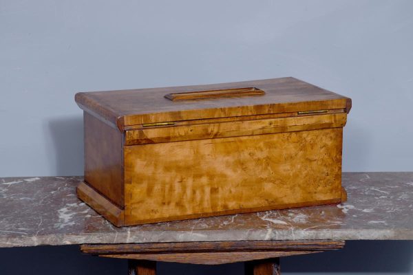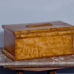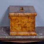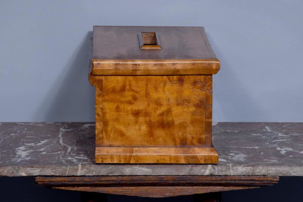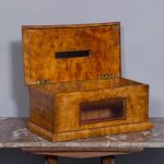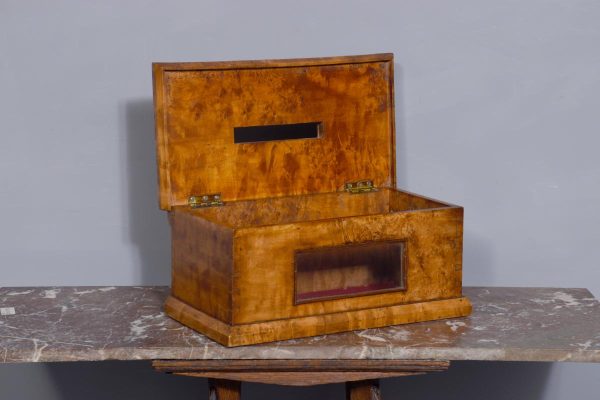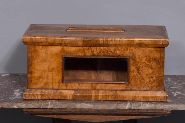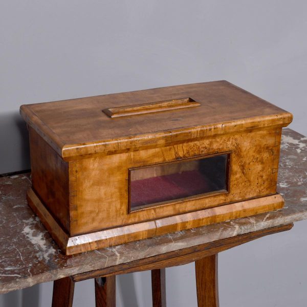 Circa 1870, rectangular maple country house posting box. With a narrow aperture to the top. for posting letters, it has a hinged top and opens to a felt-lined interior. There is a glass panel for viewing the contents and open dovetails to all sides. It has a simple moulding to the enclosed base and felt lining beneath.
