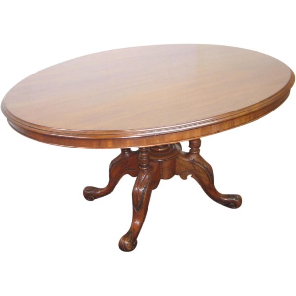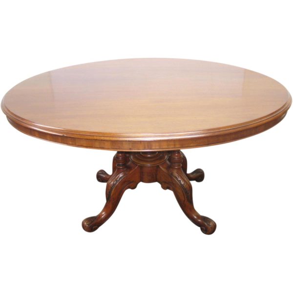 Circa 1870, mid Victorian mahogany oval top breakfast table, standing on 5 turned supports in the centre finishing on 4 carved cabriole legs.