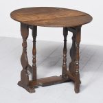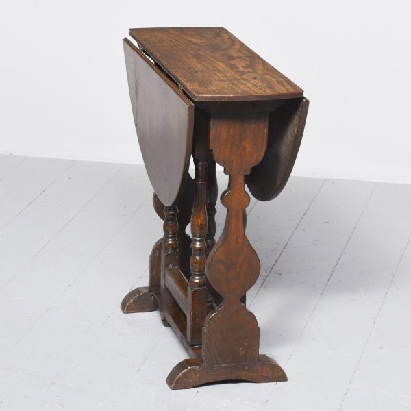 Circa 1880. Neat sized Carolean style oak gateleg table. The oval flaps opening on baluster turned gates and supported on each end by shaped trestles between a wide stretcher over neat, shaped plinths.