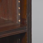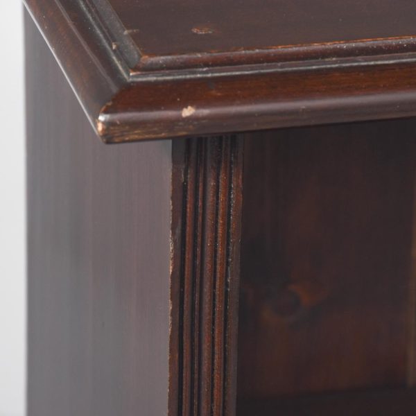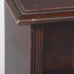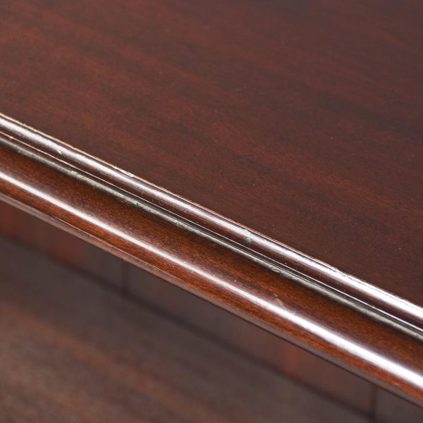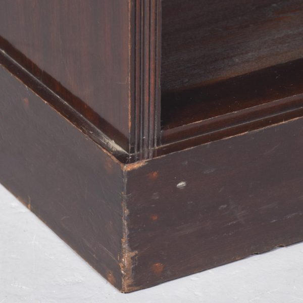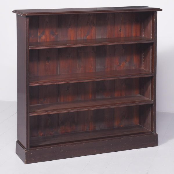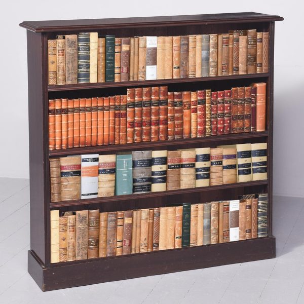 Circa 1900. A neat size mahogany open bookcase, the top in rich mahogany with elegant moulded fore-edge, with three adjustable shelves each finished with a stylish facing. The uprights are reeded, the bookcase rests on an enclosed mahogany plinth.