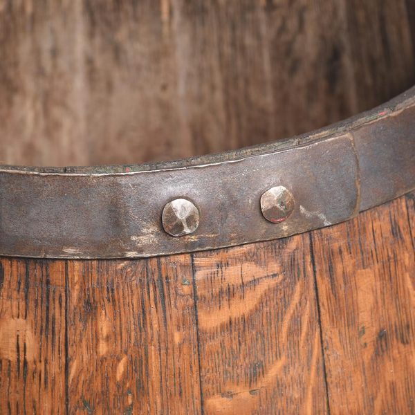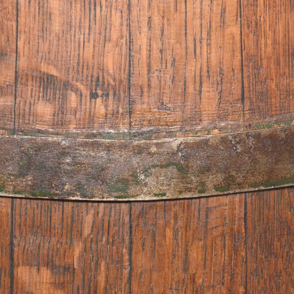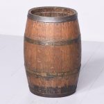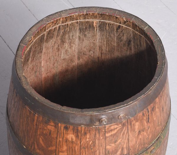 Circa 1890. An oak coopered stick stand barrel in quarter-cut oak with steel banding.