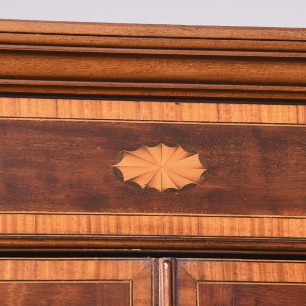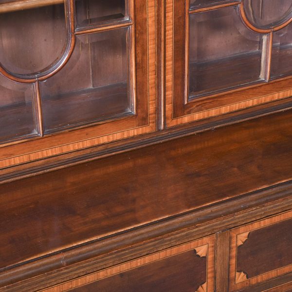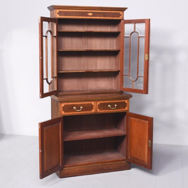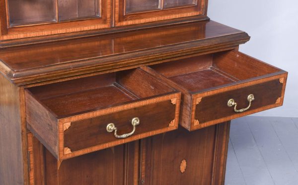 Outstanding Quality Edwardian Sheraton-Style Inlaid Mahogany Cabinet Bookcase, Possibly Maple And Co