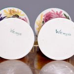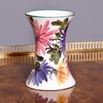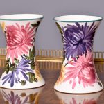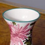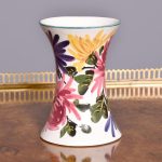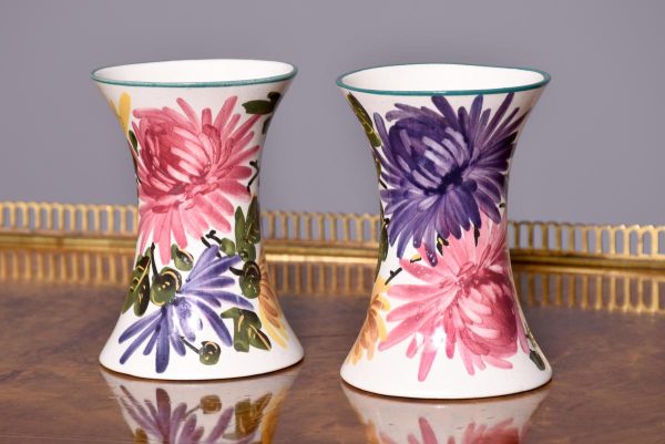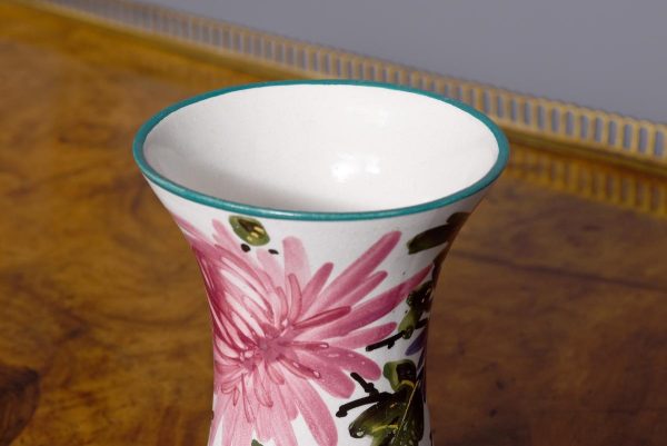 Circa 1900. A lovely pair of hand painted beaker vases by Wemyss, of typical form with the green painted rim, both hand painted with chrysanthemums and signed on the bottom, painted by two different artists. The signatures appear to be of ‘Karol Nekola’ and ‘Sandland’.