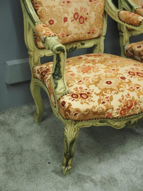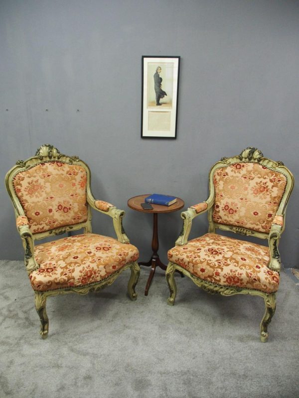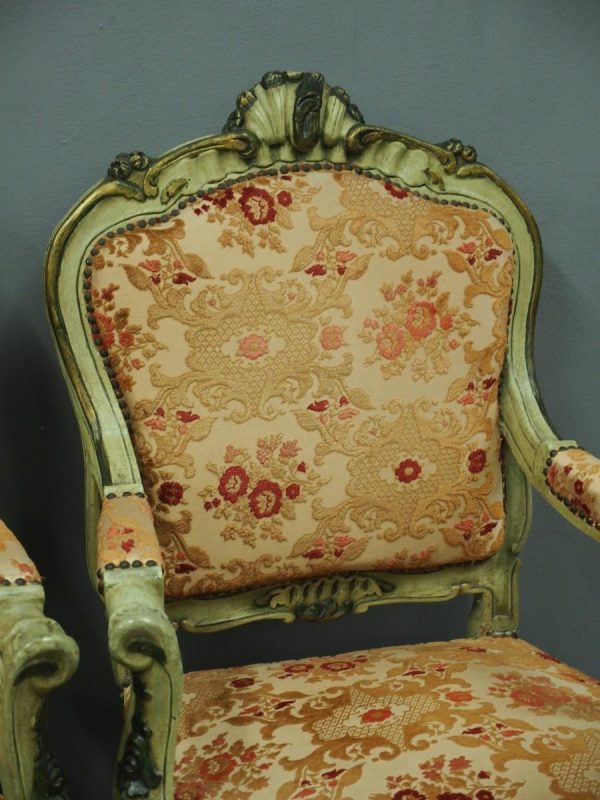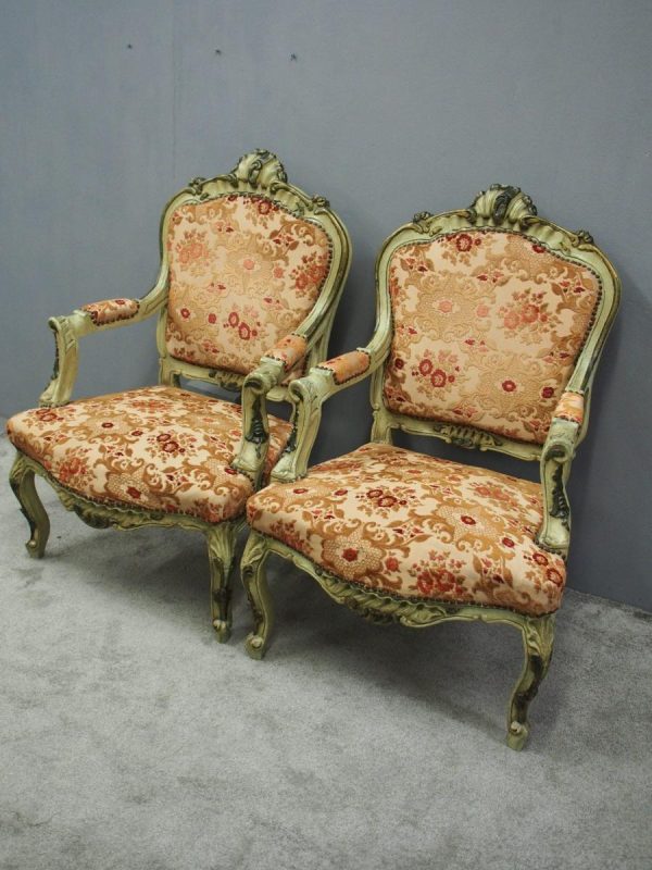 Pair of Italian Carved and Painted Armchairs