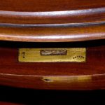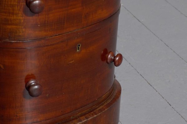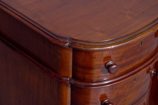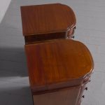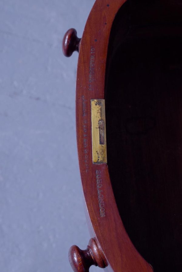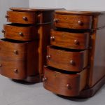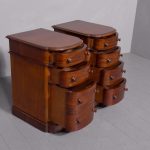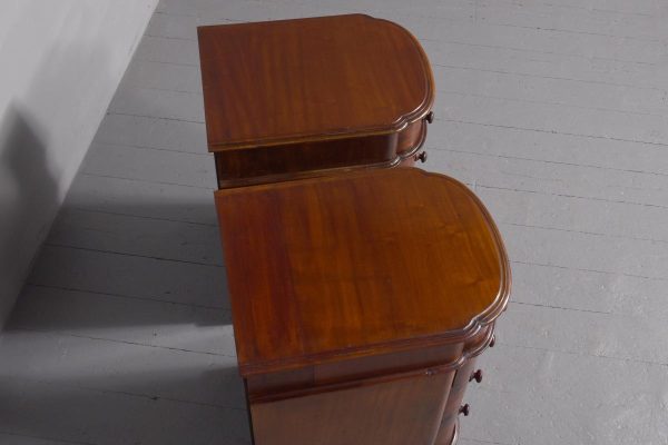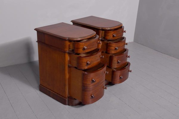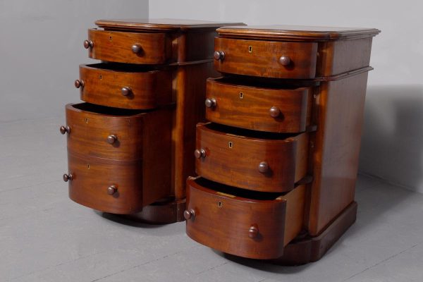 Circa 1880 Pair of Victorian Small Mahogany Chest of Drawers/Bedside Lockers. The bow-fronted tops with moulded edges above four graduated mahogany bow-fronted drawersmade by famouscabin makers James Winter & Sons 101 Wardour Street, London (stampedon the drawers). With original finely turned bun handles and solid mahogany drawer linings(sign of quality cabinet making). All supported on moulded enclosed plinth bases.