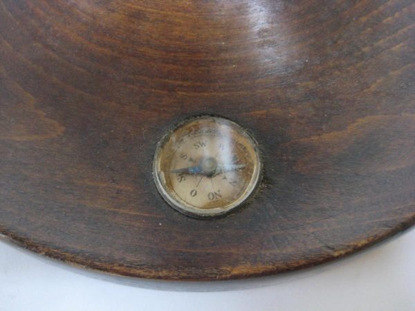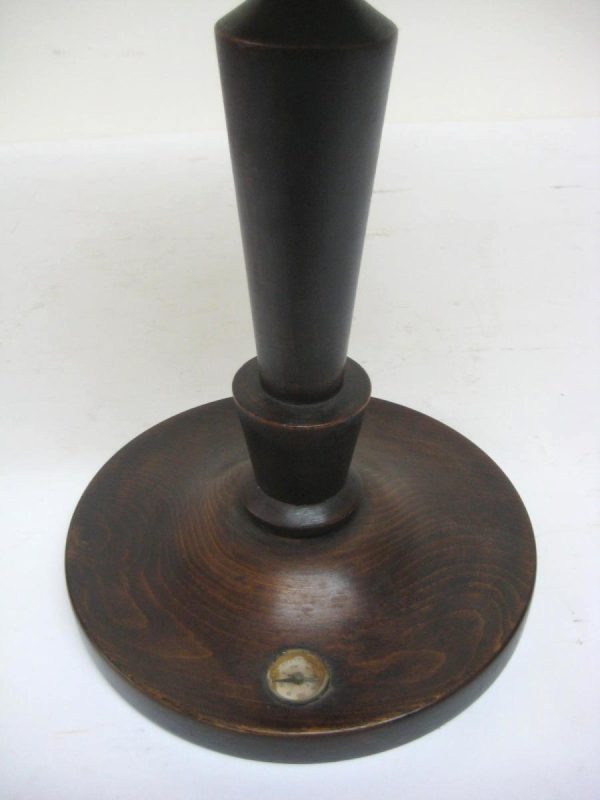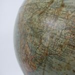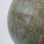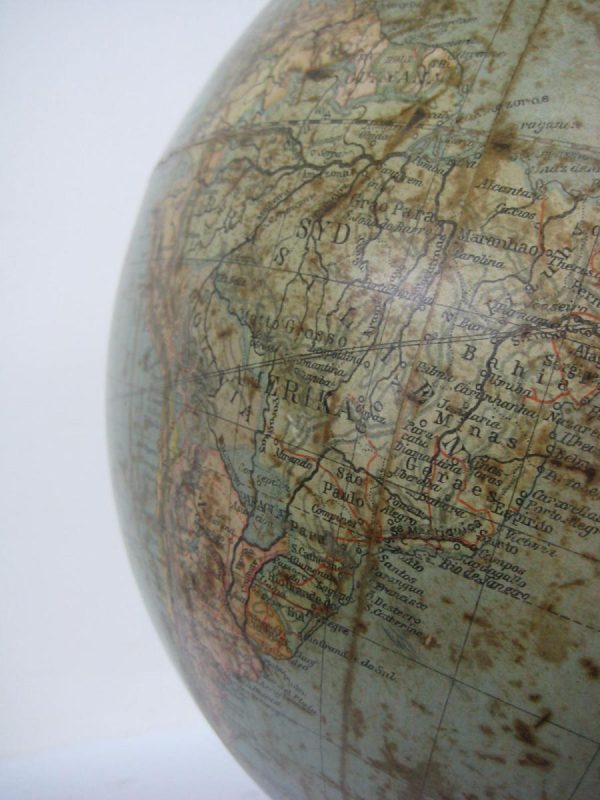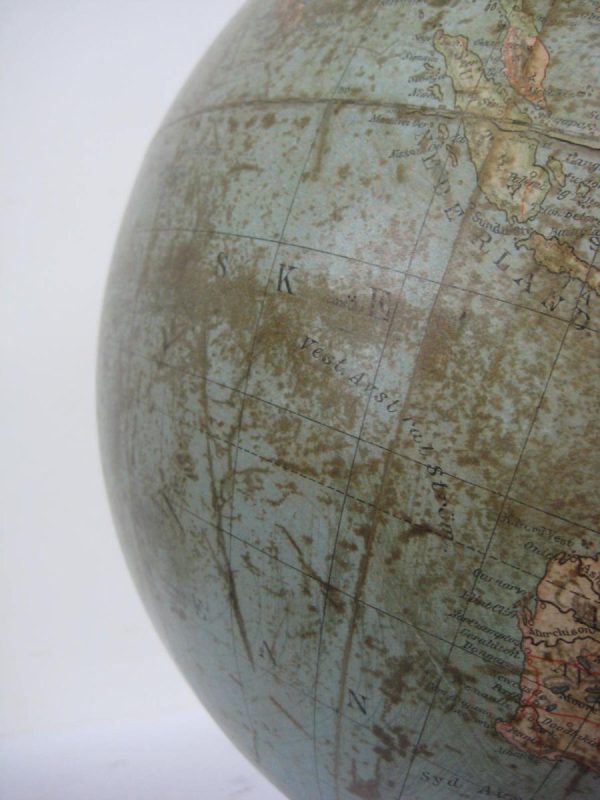 Circa 1900, papier-mâché and painted globe with a stained beech stand containing a compass, fair wear and tear.