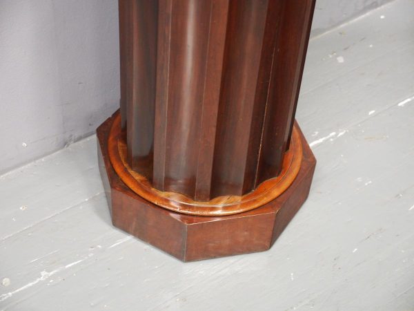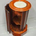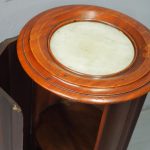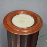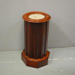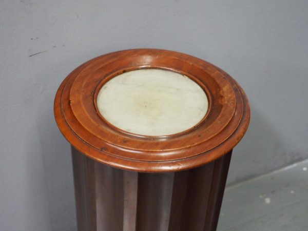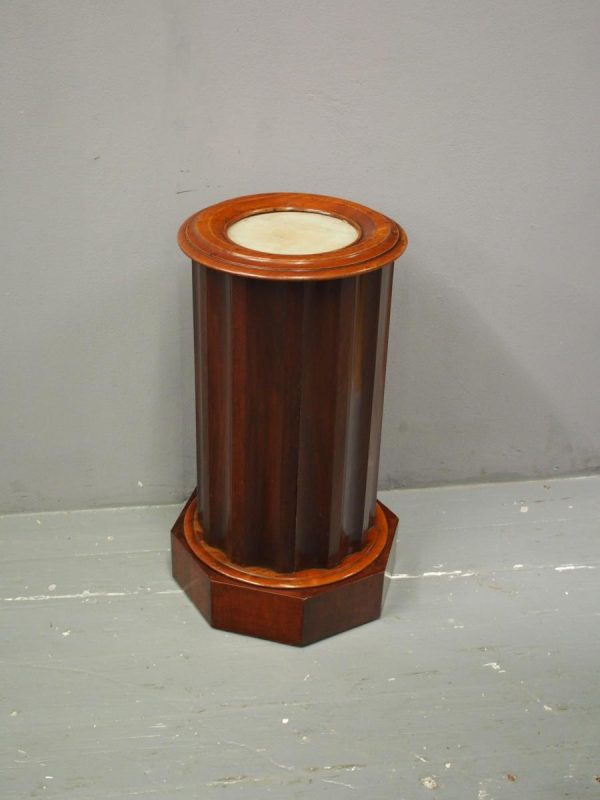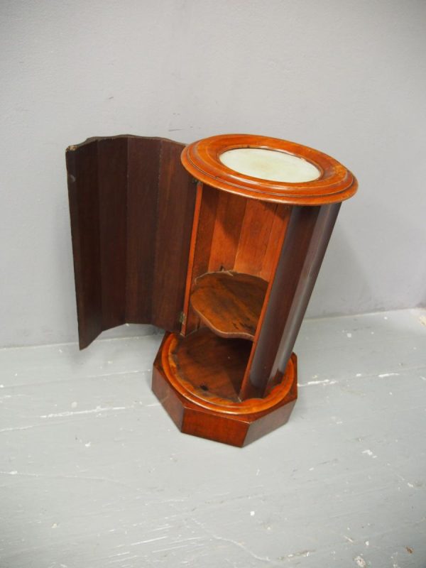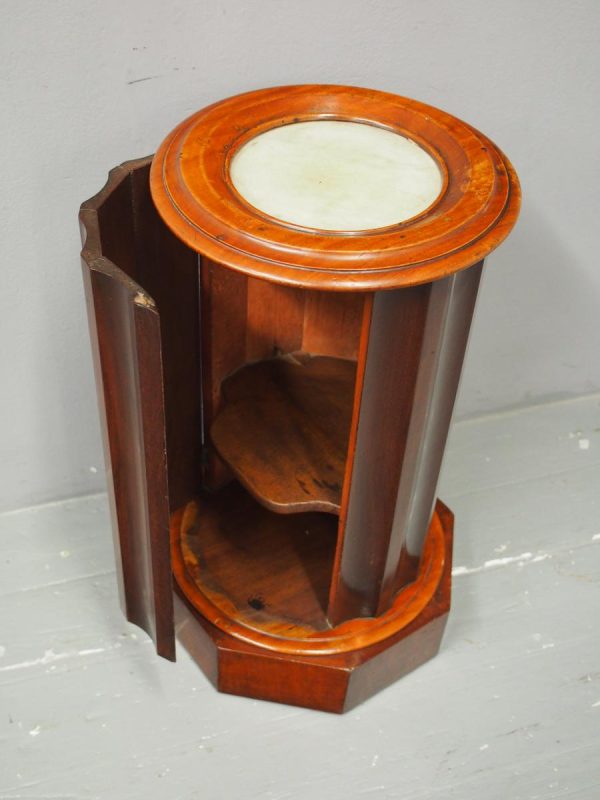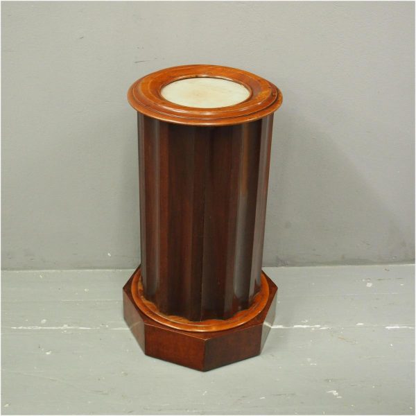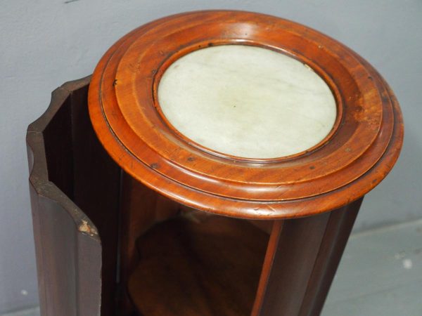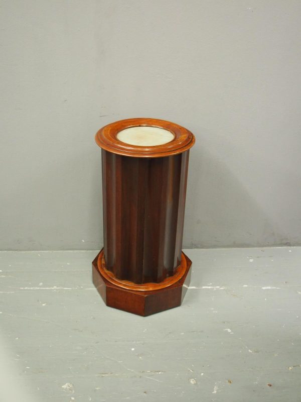 Circa 1860, Victorian mahogany fluted cylindrical bedside locker. The circular turned top with a white marble inset above the fluted locker with a hidden hinged door opening to shelved interior. All standing on an octagonal base.
