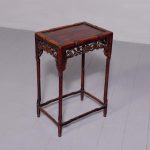 Qing period neat-sized Chinese carved Hongmu occasional table. The rectangular top with a beaded central panel and with foliate carved moulded edges above a frieze with open fret carving of vines and foliage. All supported on 4 faux bamboo legs with faux bamboo peripheral stretchers, lovely colour and patina