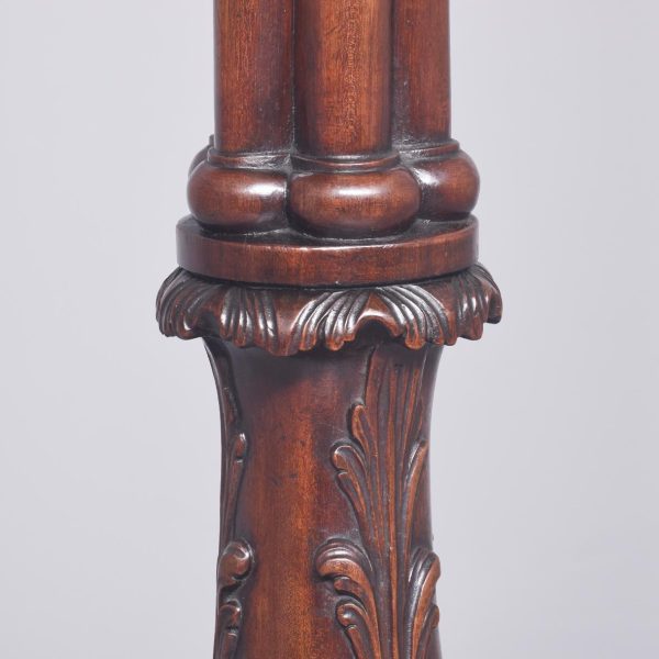 Circa 1920 Quality carved-mahogany country house standard lamp. The cluster-column stem with a carved acanthus leaf base over a turned circular base with an acanthus leaf collar supported on neat bun feet